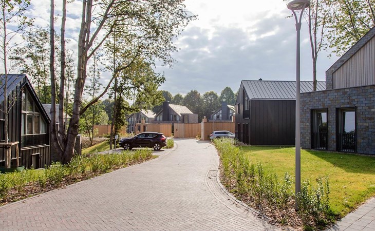 Eén slaapkamer bevindt zich op de begane grond. De villa is uitgerust met een royale woonkamer met sfeervolle haard. De open keuken met kookeiland is voorzien van luxe apparatuur, waaronder een kokendwaterkraan, combi-oven, vaatwasser en een Nespresso apparaat.