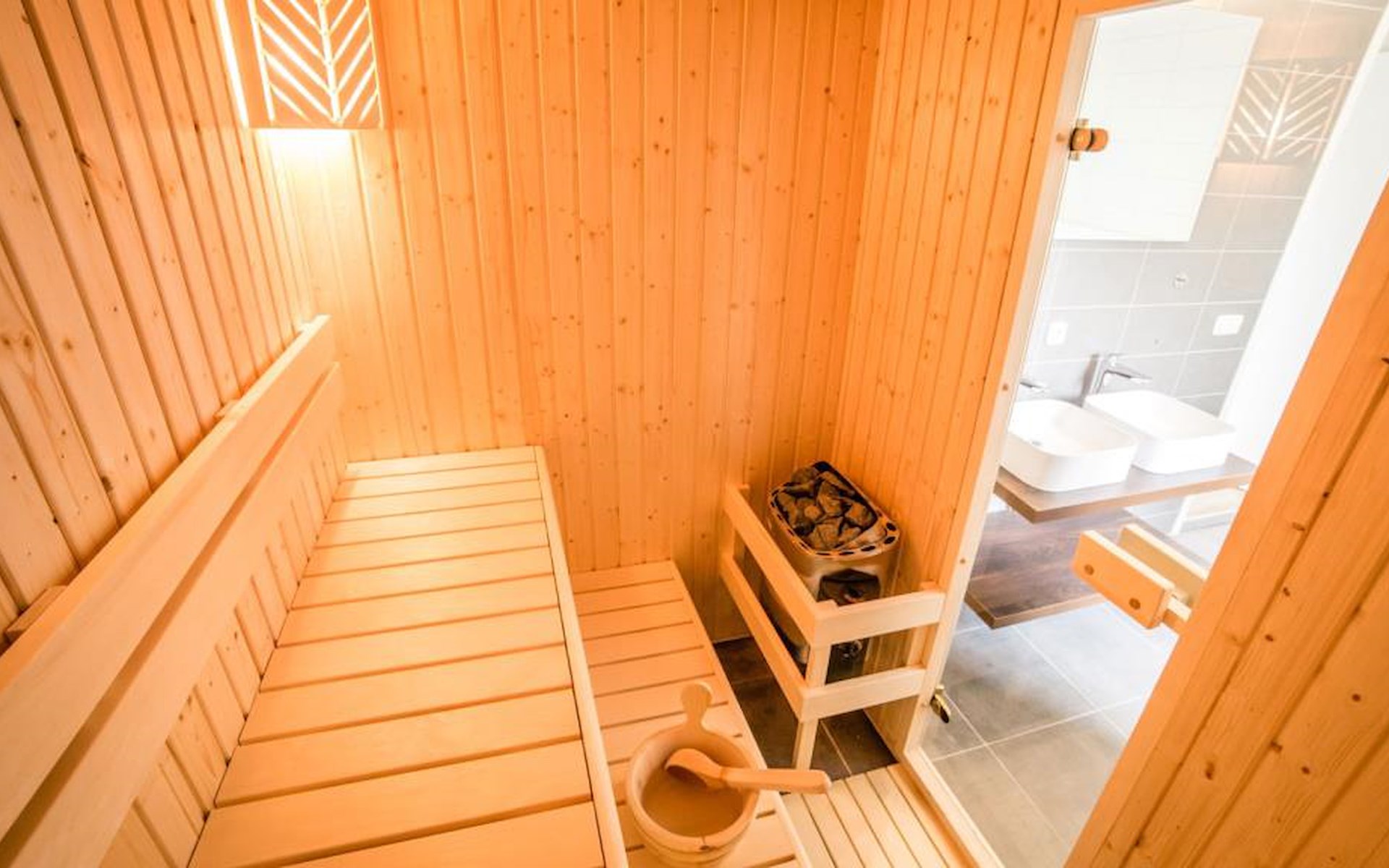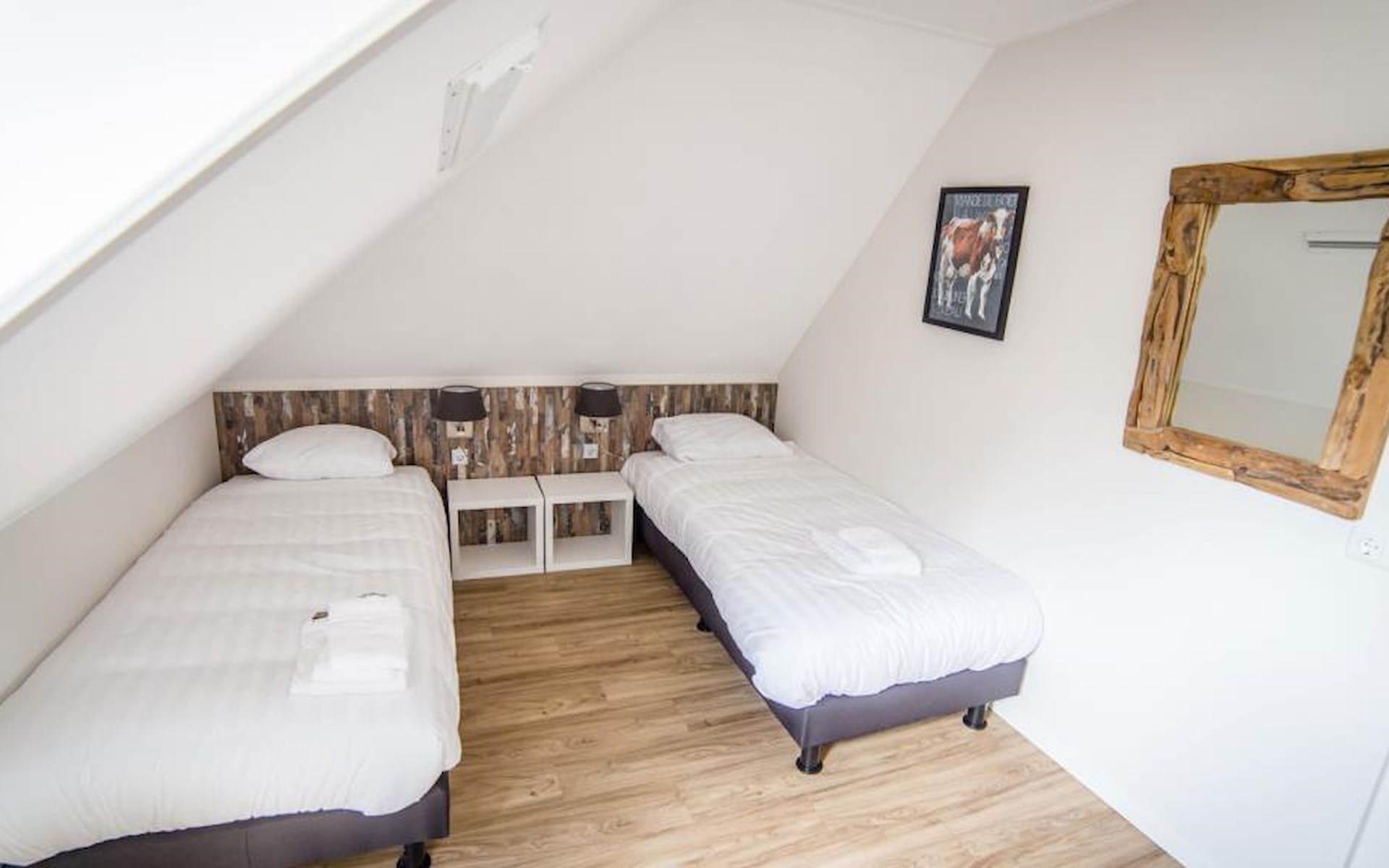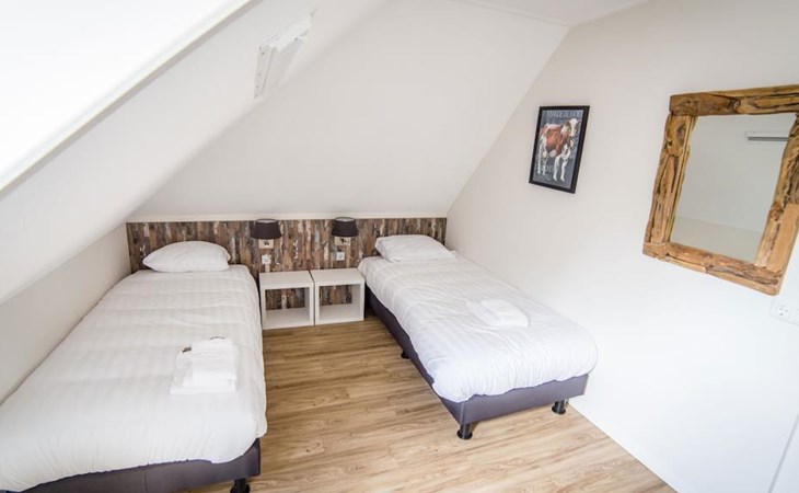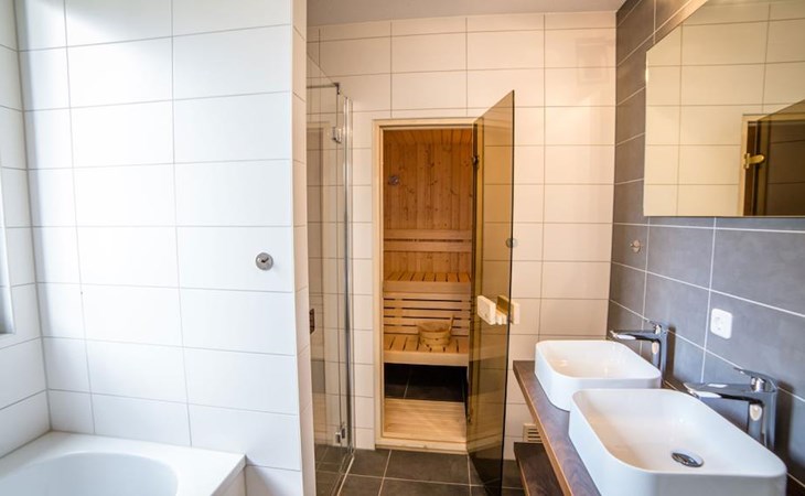 Je hebt de beschikking over 4 slaapkamers met 2 éénpersoonsbedden, waarvan 2 slaapkamers zich op de eerste verdieping bevinden en 2 slaapkamers op de tweede verdieping. De badkamer op de eerste verdieping is voorzien van een bubbelbad, douche, dubbele wastafel en toilet. Voor extra ontspanning heb je hier de beschikking over een sauna. De tweede badkamer bevindt zich op de tweede verdieping en heeft een douche, wastafel en toilet.