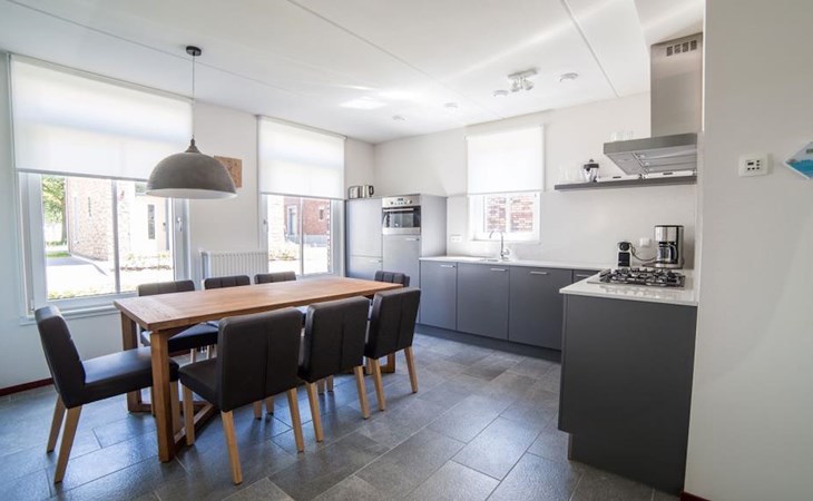 Daarnaast is er een eetgedeelte met eettafel. De luxe keuken is van alle gemakken voorzien met onder andere een koelkast, combi-oven, vaatwasser, waterkoker, kookplaat, broodrooster en een Nespresso apparaat.