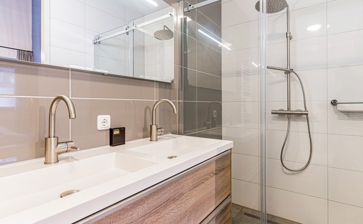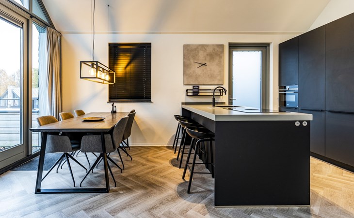 Deze zeer ruime, lichte 6-persoons Hertogenvilla Prestige Waterkant is van alle gemakken voorzien. Je hebt de beschikking over een zeer ruime woonkamer met comfortabele zithoek en eethoek, televisie en een knusse gashaard. De open keuken heeft een riant kookeiland met luxe apparatuur, zoals een kokendwaterkraan, combi-oven, vaatwasser en een Nespresso apparaat.
