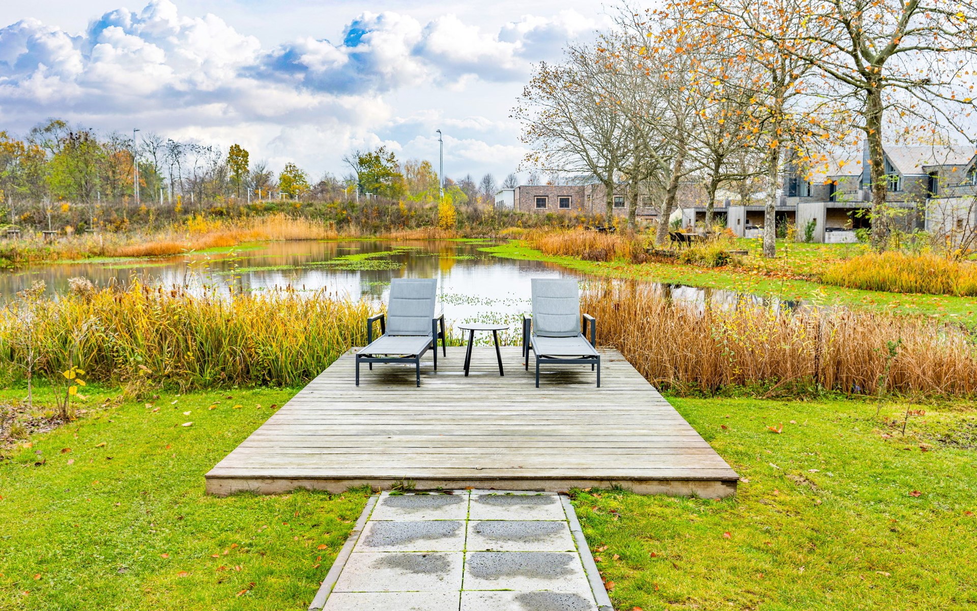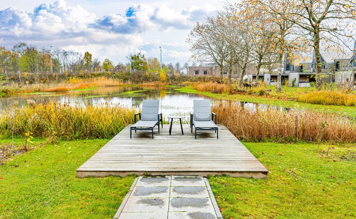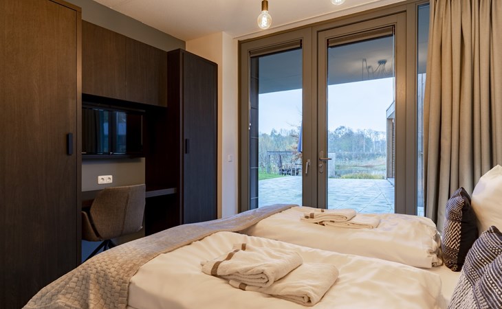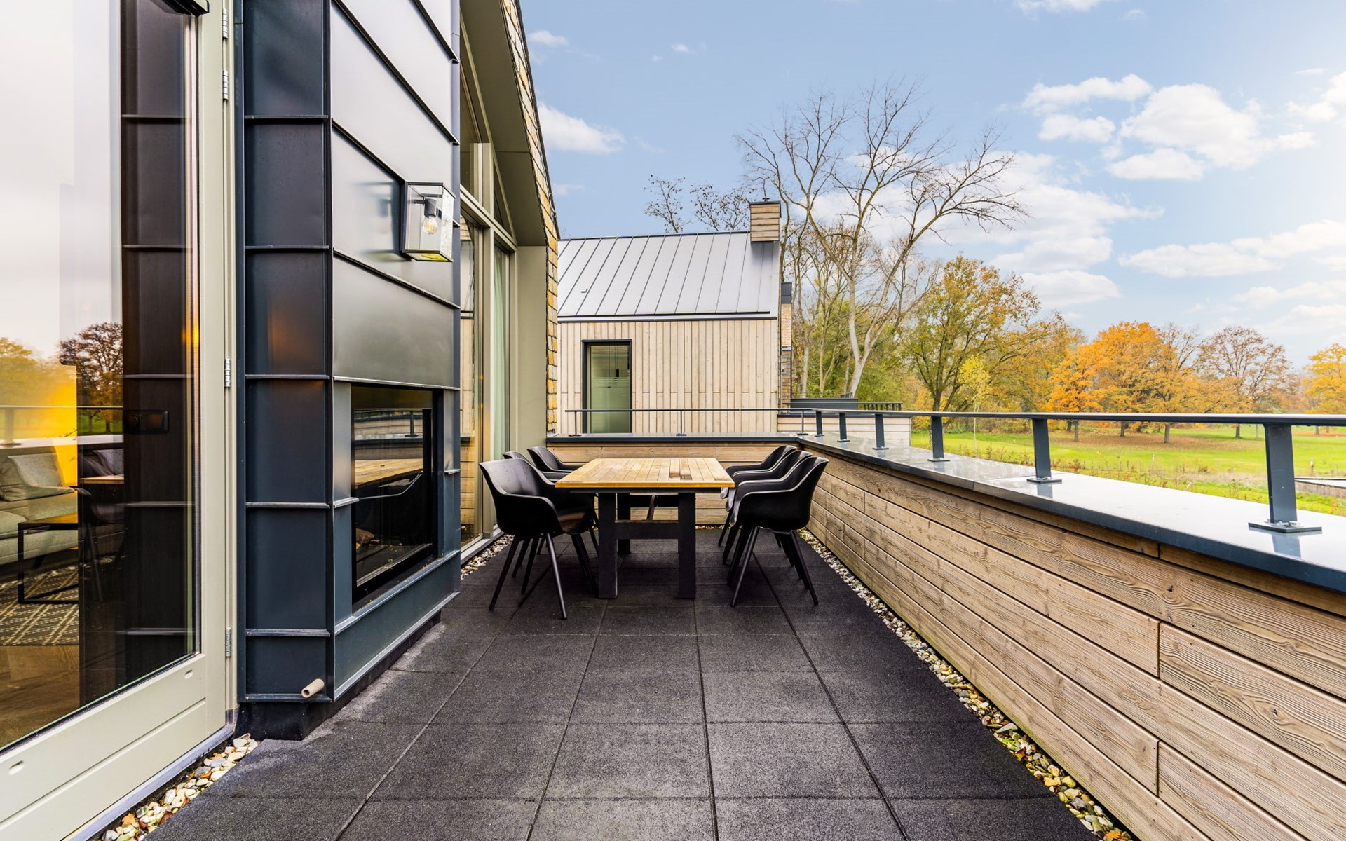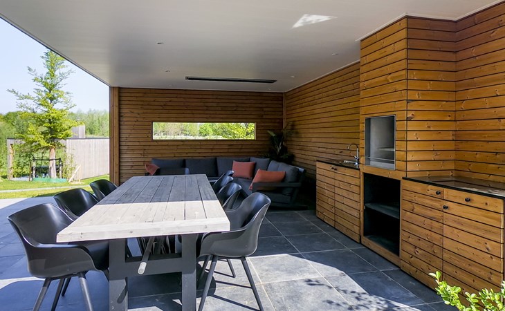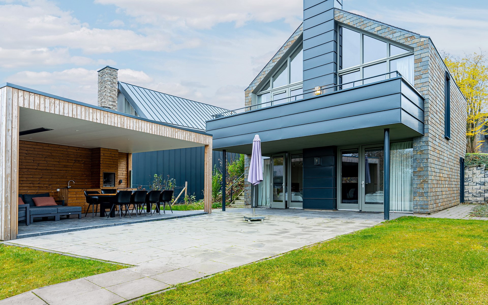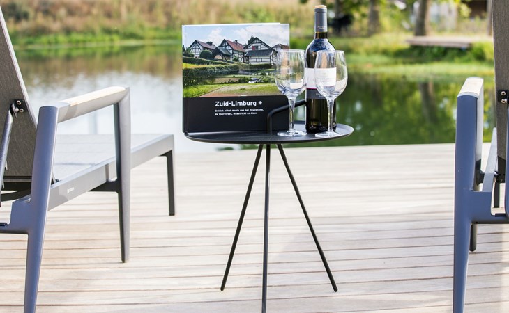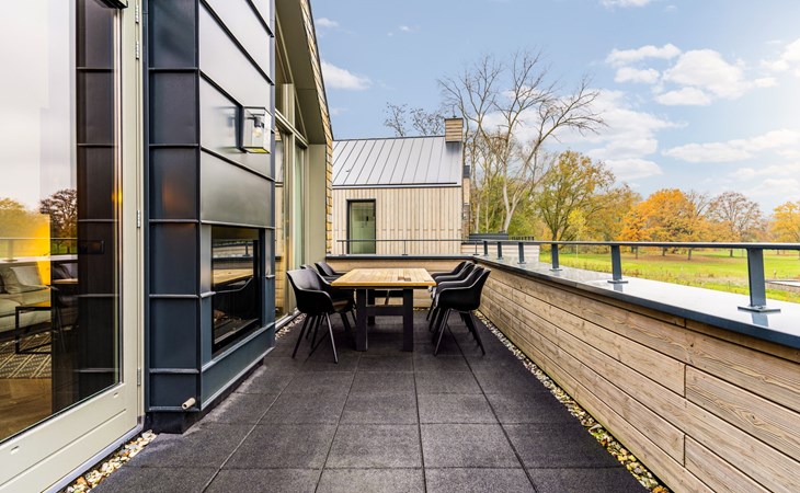 Door de openslaande deuren loop je vanuit de woonkamer het balkon op, waar je met het hele gezelschap heerlijk kunt genieten van het Limburgse landschap. De villa beschikt ook over een lounge met riante buitenkeuken en een vlonder aan het water.