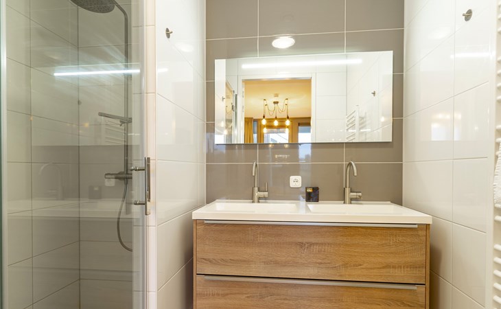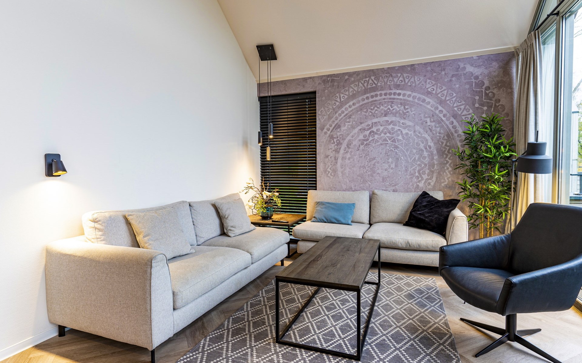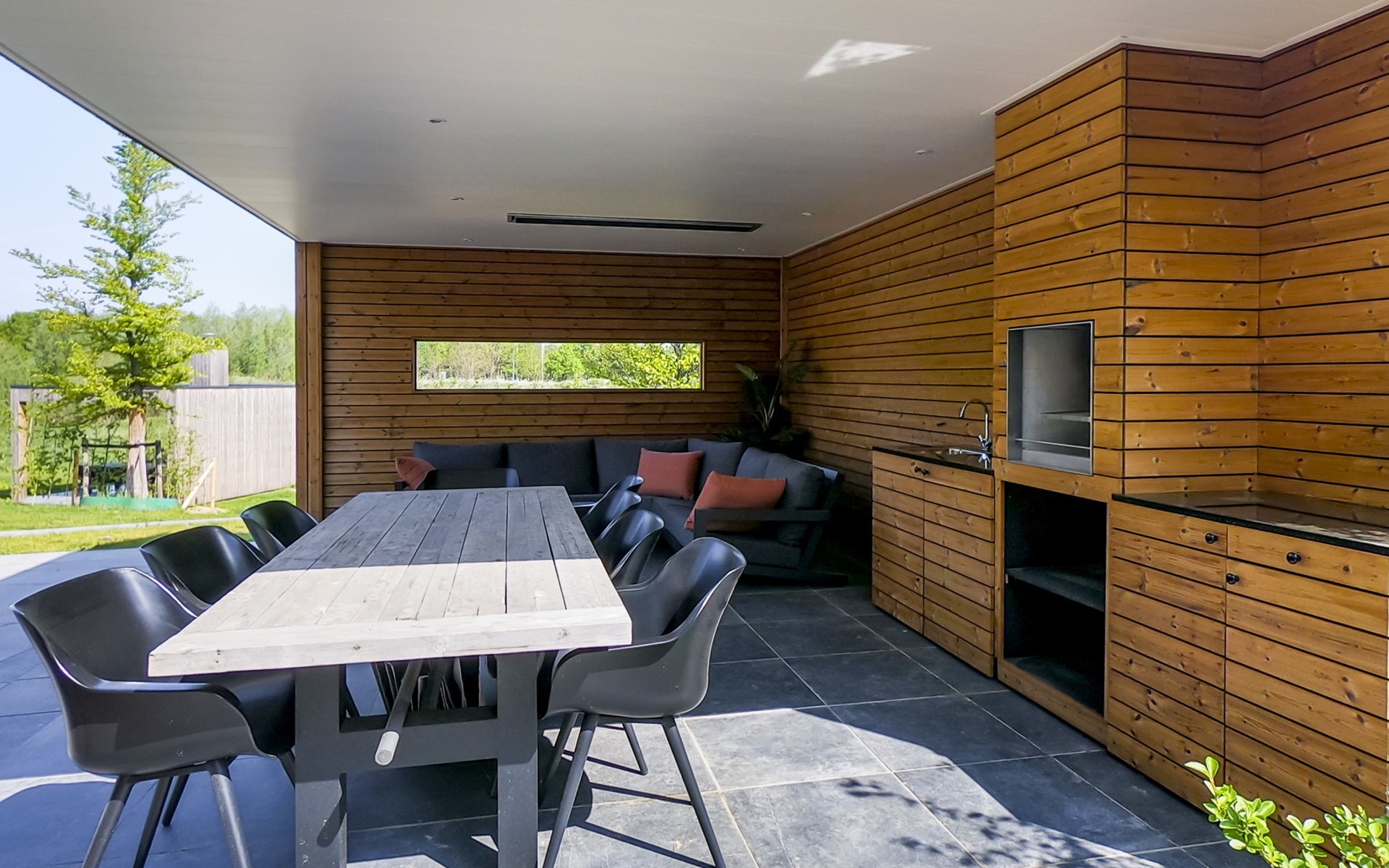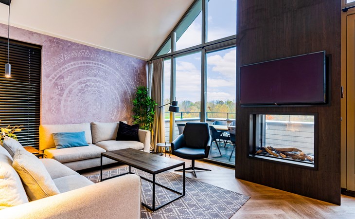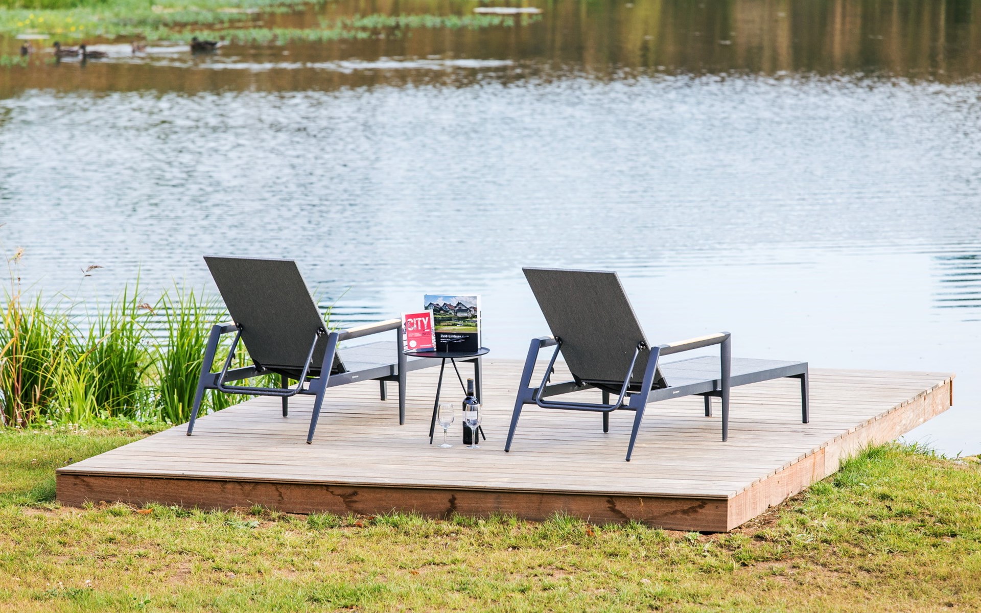 Door de openslaande deuren loop je vanuit de woonkamer het balkon op, waar je met het hele gezelschap heerlijk kunt genieten van het Limburgse landschap. De villa beschikt ook over een lounge met riante buitenkeuken en een vlonder aan het water.