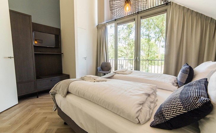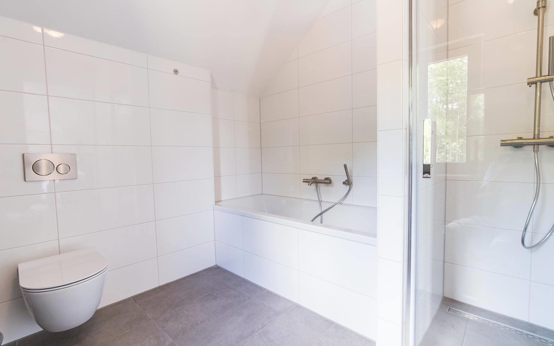 Deze villa heeft 4 slaapkamers met elk een eigen badkamer met een douche, dubbele wastafel en toilet. Twee van de badkamers zijn zelfs voorzien van een ligbad. De metershoge glaspui aan de achterzijde van de villa zorgt binnen voor veel daglicht. Daarnaast biedt dit je een schitterend uitzicht over het vele groen in de omgeving.