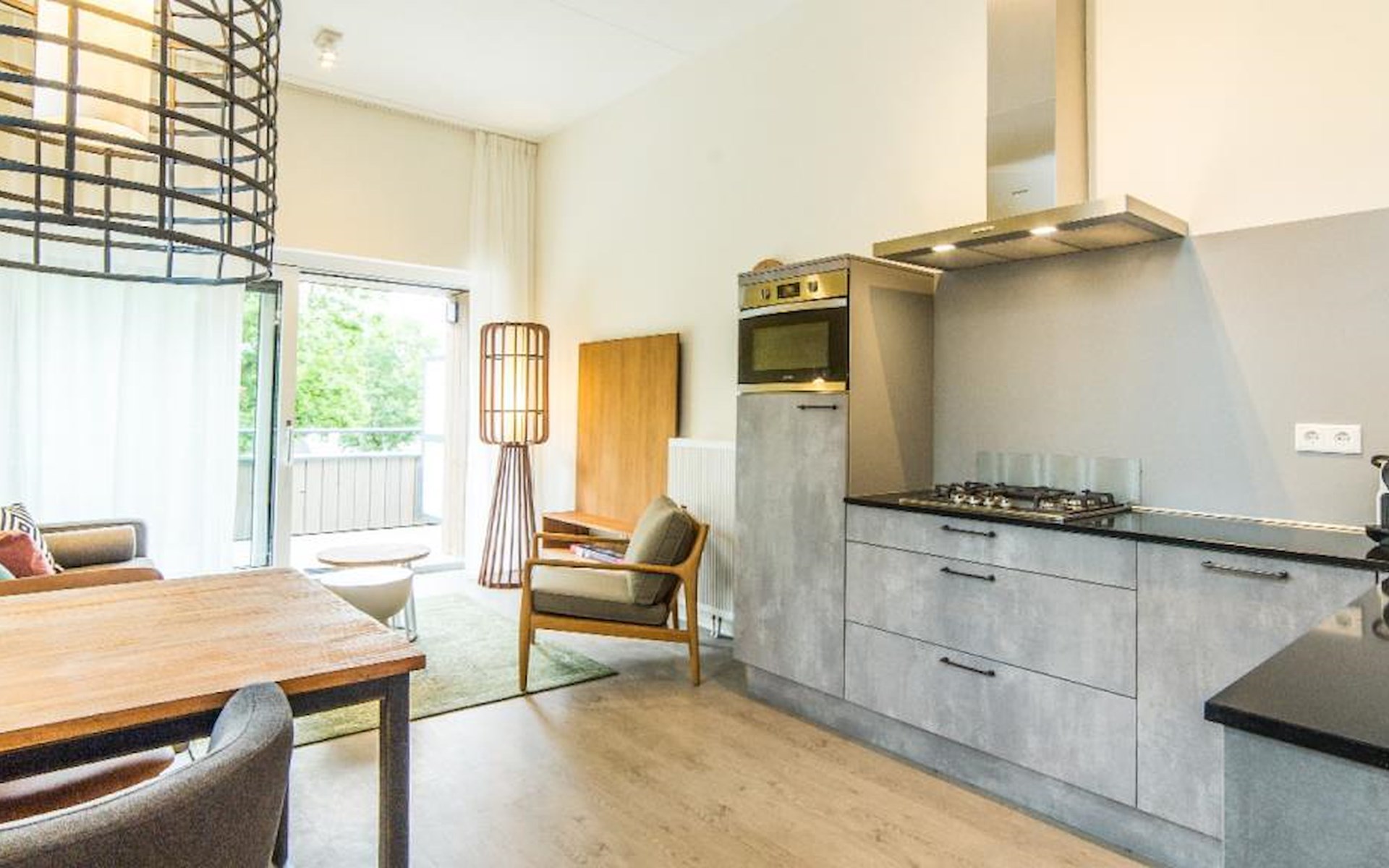 Het appartement is modern ingericht en heeft een royale woonkamer met een zithoek en een eetgedeelte. De open keuken beschikt over luxe apparatuur en is van alle gemakken voorzien.