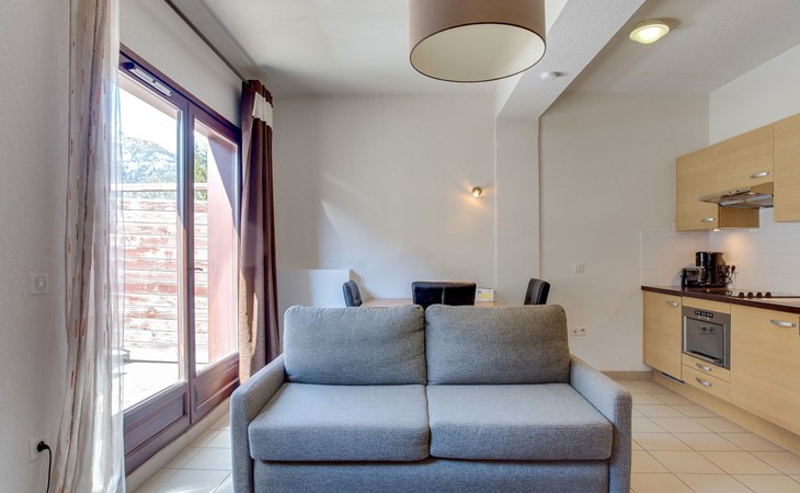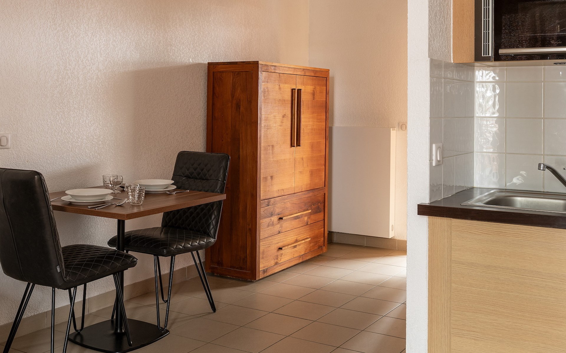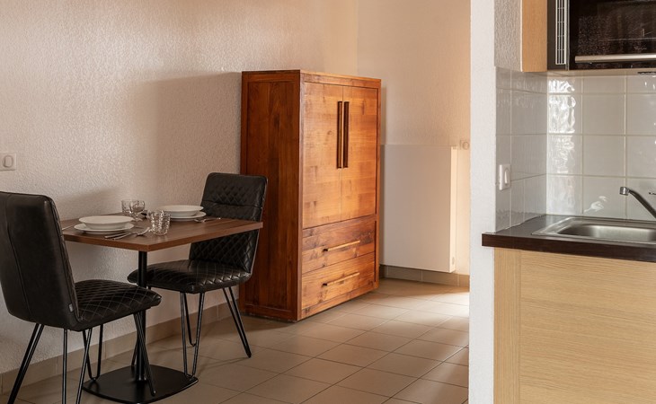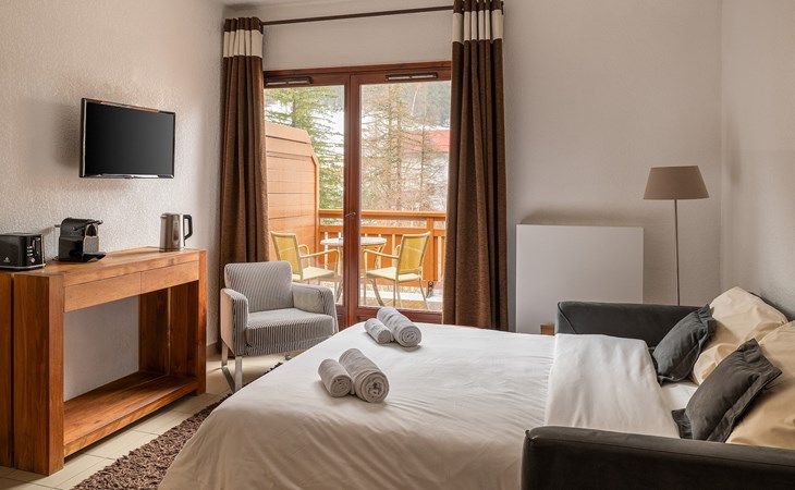 Verblijf in de sfeervolle 2-persoons Studio du Moine (T1) op Dormio Resort Les Portes Du Mont Blanc. De studio heeft een gebruiksoppervlakte van circa 30 m2.