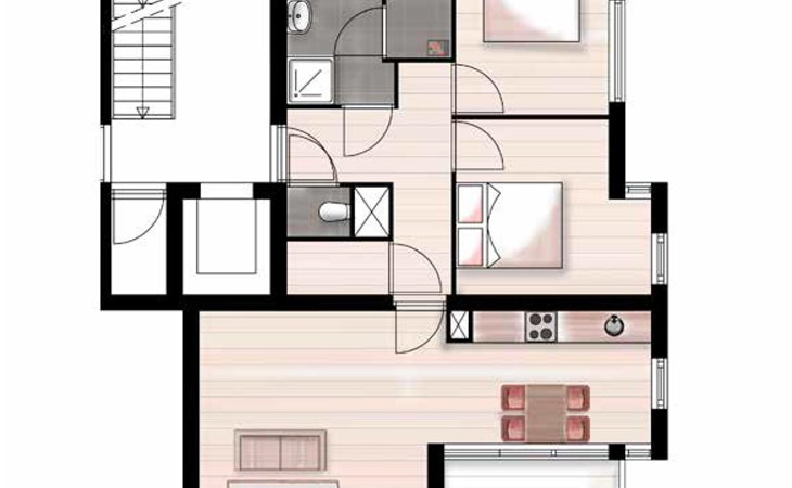 Het appartement beschikt over 2 slaapkamers, 1 badkamer en heeft een gebruiksoppervlakte van circa 83 m2. De sfeervolle, royale woonkamer is voorzien van een zithoek met televisie en een eethoek. De open keuken is van alle gemakken voorzien en beschikt over onder andere een gaskookplaat, combimagnetron en vaatwasser. Vanuit de woonkamer heb je toegang tot een gemeubileerd balkon dat is ingericht met terrasmeubilair. Hier heb je een prachtig uitzicht over het Rurdal.