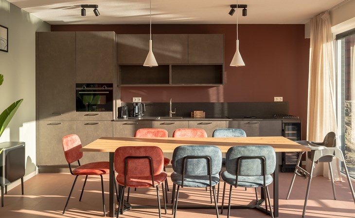 De royale woonkamer is voorzien van een eet- en zithoek, een smart-tv met streaming mogelijkheid en een open speelruimte voor kinderen met een speelhuisje en diverse speelelementen. De moderne open keuken is compleet uitgerust met onder andere een Bora kookplaat, combi-oven, vaatwasser, Nespresso apparaat en een wijnkoelkast.