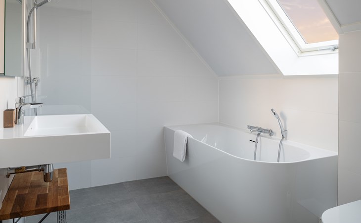 Op de eerste verdieping bevinden zich 2 slaapkamers met elk 2 éénpersoonsbedden. Eén slaapkamer heeft een smart-tv met streaming mogelijkheid. Beide slaapkamers beschikken over een en-suite badkamer met een douche, wastafel en toilet. Eén van de badkamers heeft ook een ligbad waarin je heerlijk kunt ontspannen.