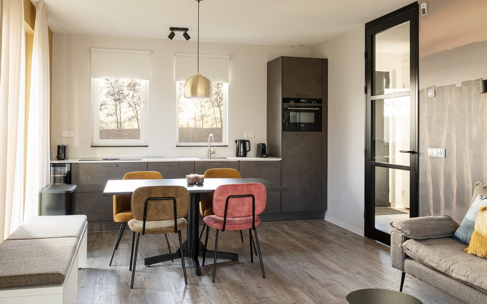 De Schelp heeft een royale woonkamer met een zit- en eethoek. In de woonkamer bevindt zich een smart-tv die je de mogelijkheid biedt je favoriete content te streamen. De moderne keuken is van alle gemakken voorzien, met onder andere een Bora kookplaat, combi-oven, vaatwasser, Nespresso apparaat en een wijnkoelkast. Verder heeft de vakantiewoning op de begane grond een separaat toilet.
