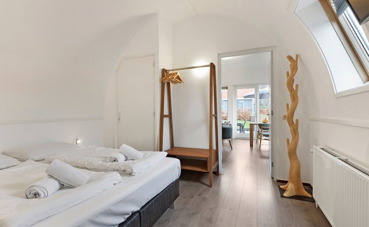 De bungalow heeft 1 slaapkamer met 2 éénpersoonsbedden en een softtopper. De en-suite badkamer is voorzien van een inloopdouche en wastafel. Daarnaast is er een apart toilet aanwezig.
