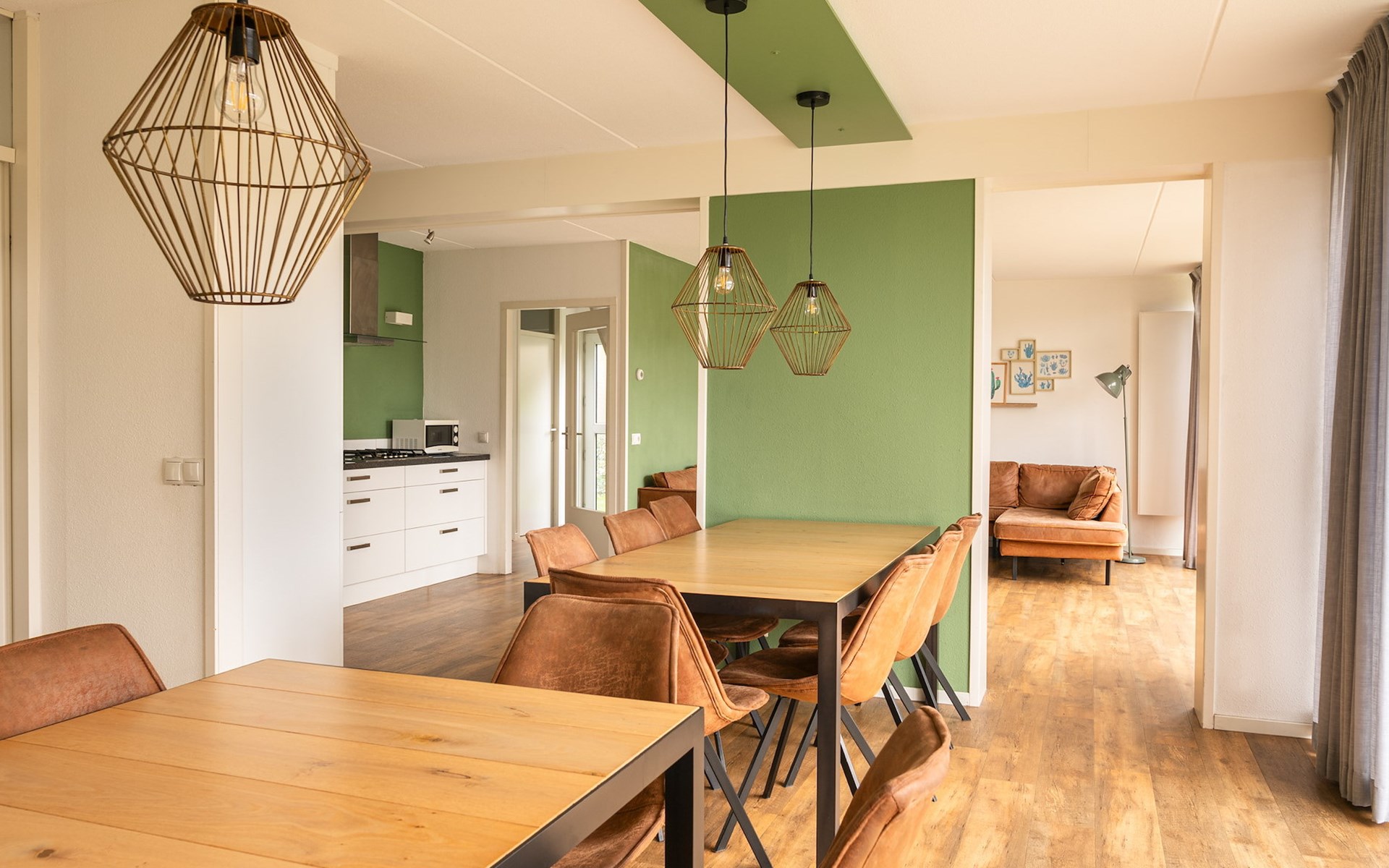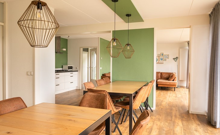 De vrijstaande bungalow Comfort 14 op Summio Vakantiepark Emslandermeer is geschikt voor maximaal 14 personen. De comfortabele groepsaccommodatie bestaat uit 2 verdiepingen en heeft 7 slaapkamers en 2 badkamers.
