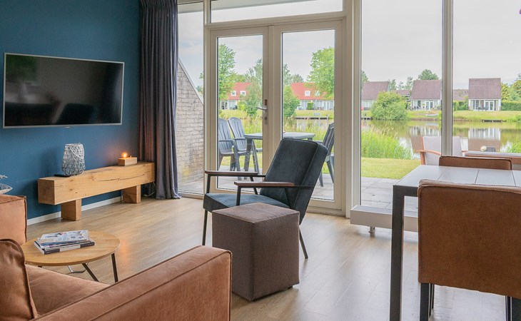 Buiten is een tuin met een gemeubileerd terras. Deze bungalow is gelegen aan het water en heeft een eigen steiger. Daarnaast is er een vismogelijkheid bij het vakantieverblijf.
