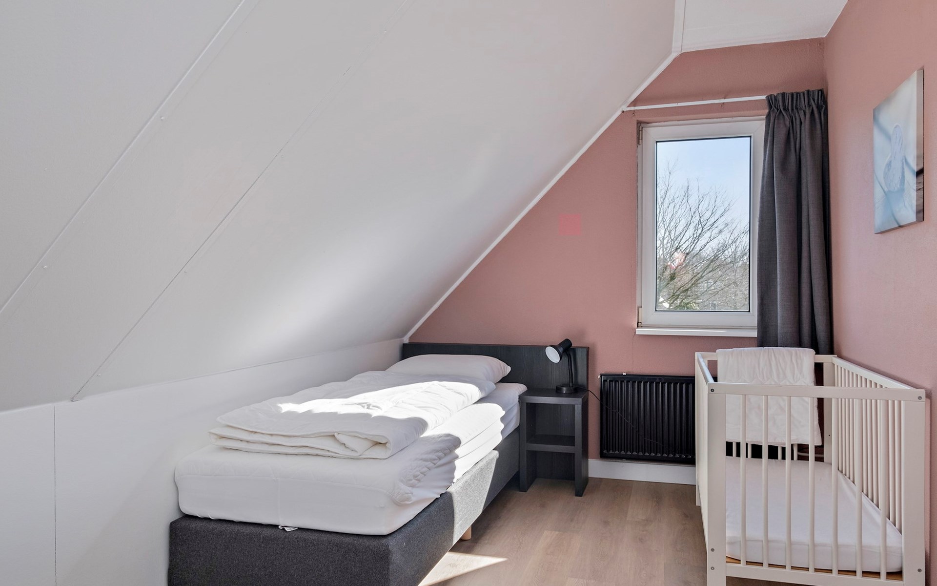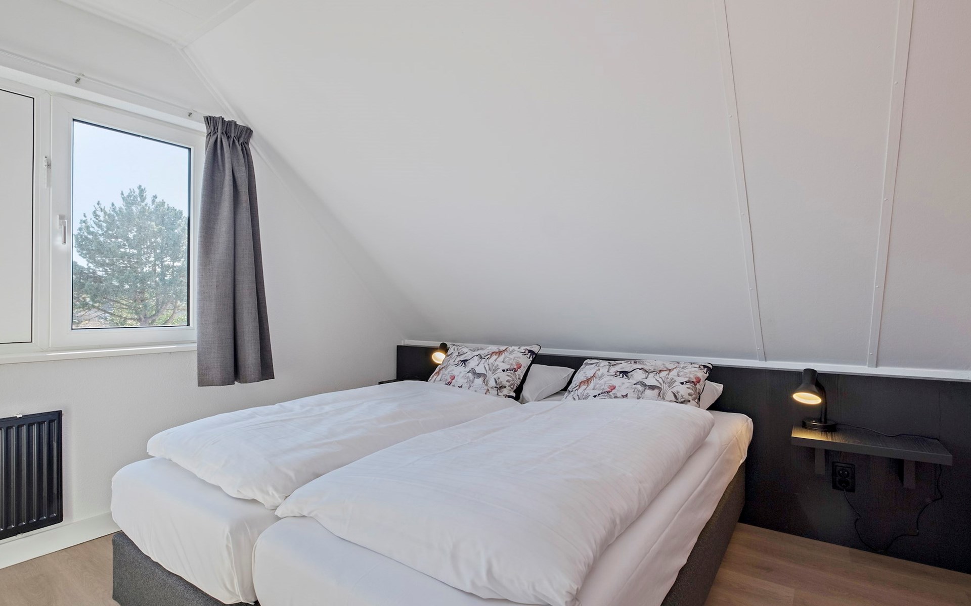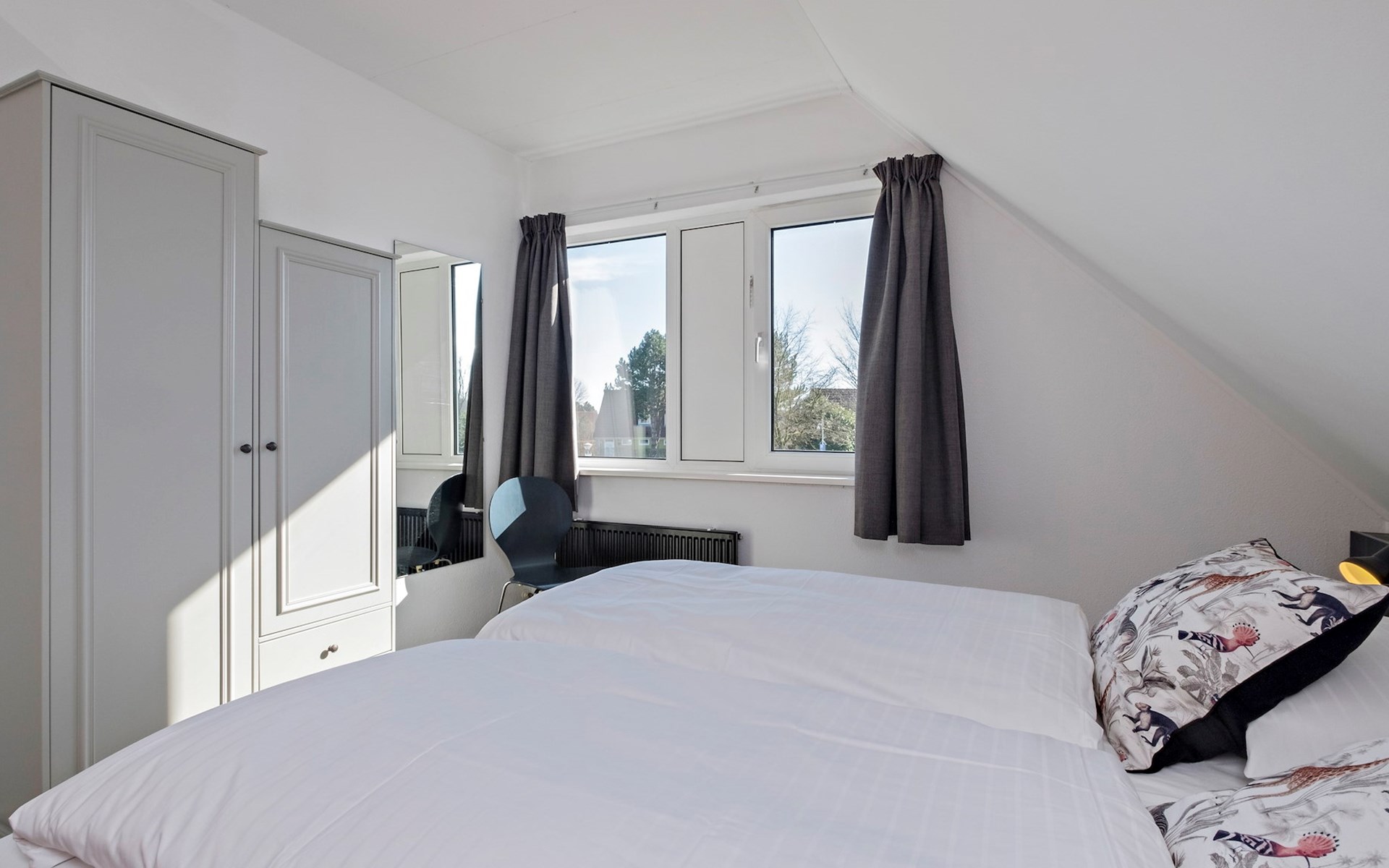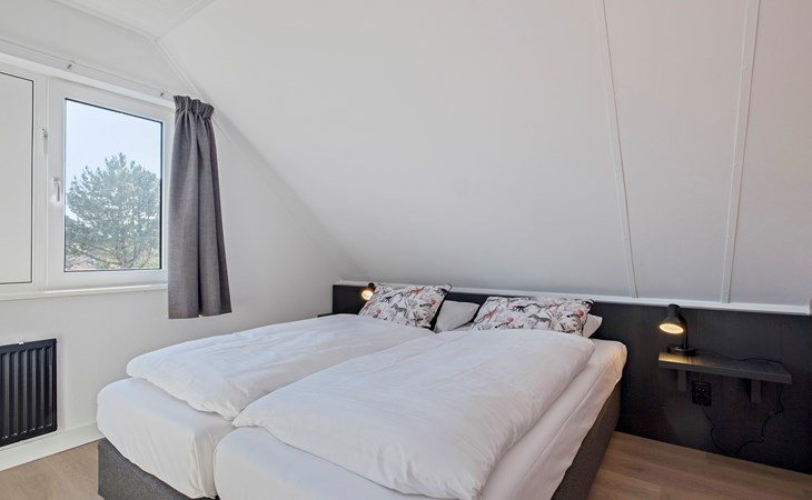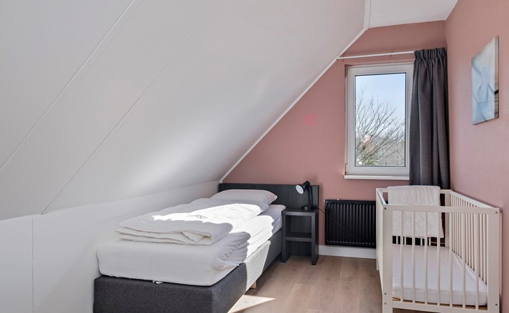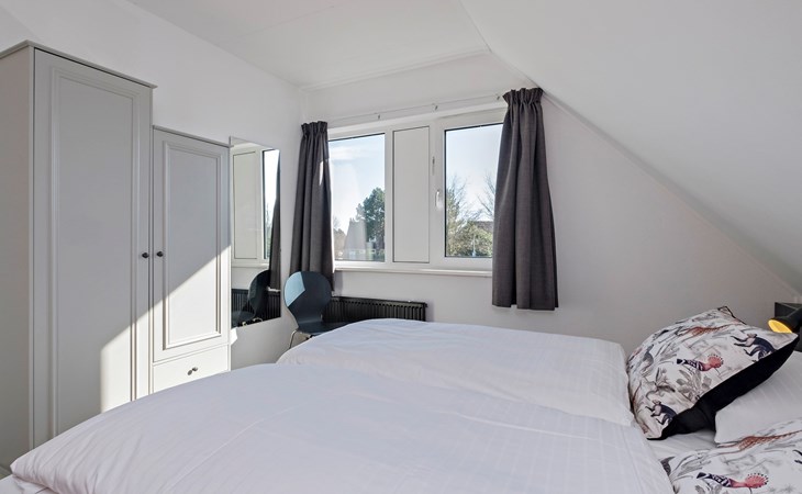 Op de eerste verdieping bevinden zich 3 slaapkamers. Er zijn 2 slaapkamers met elk 2 éénpersoonsbedden. De derde slaapkamer is ingericht met 1 éénpersoonsbed.
