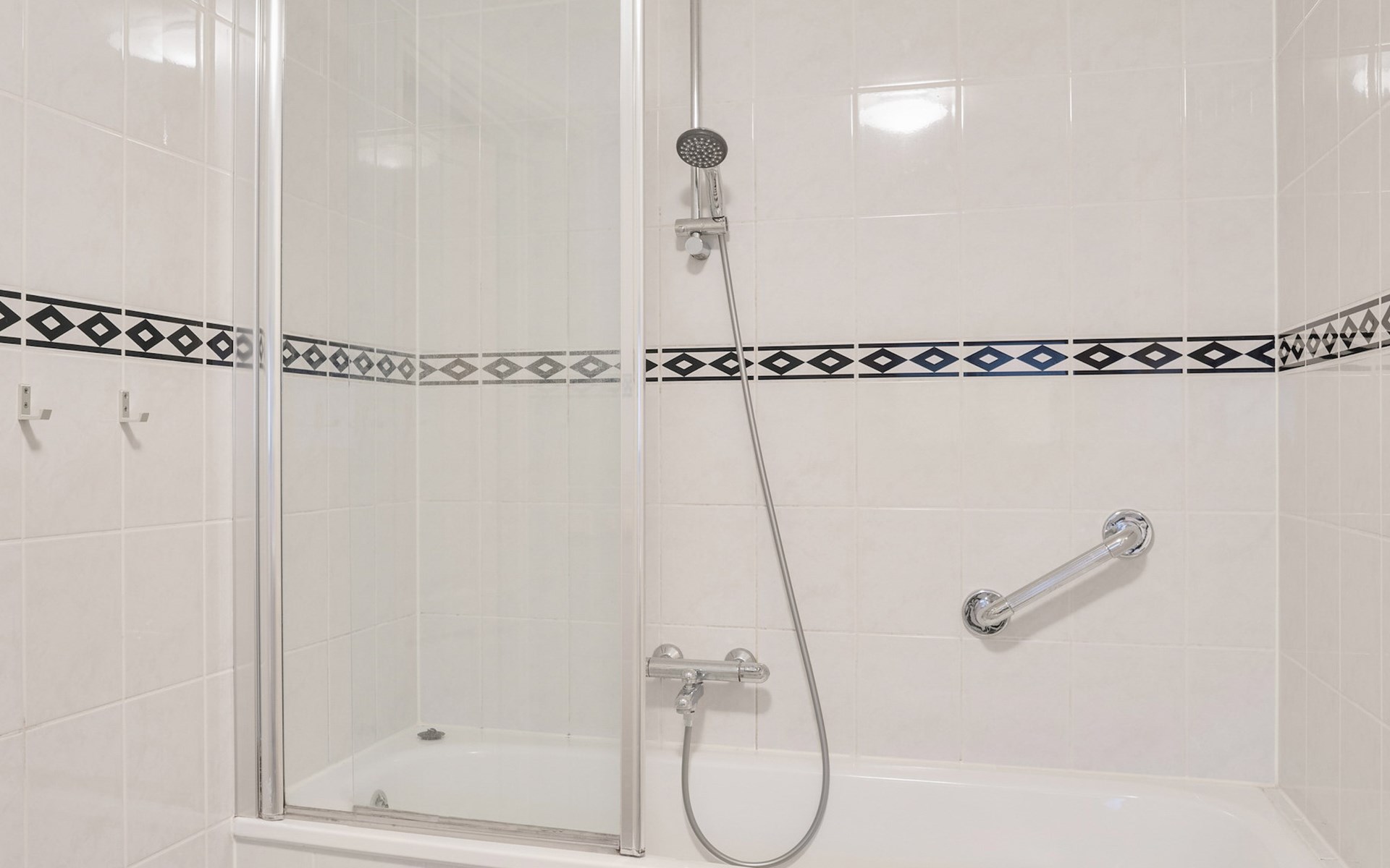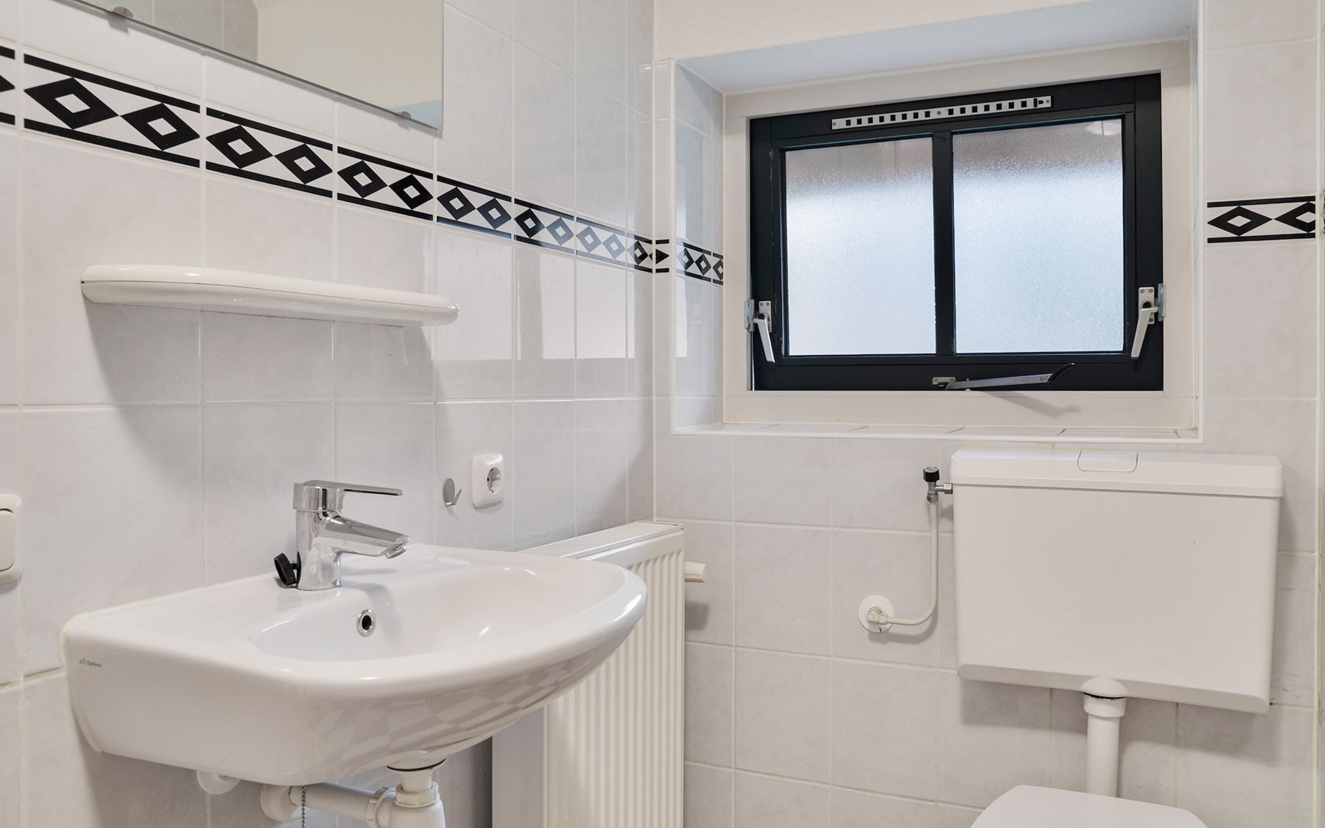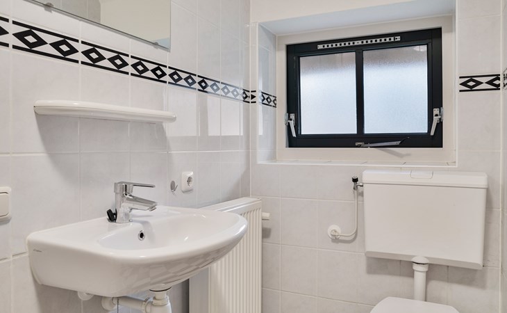 Op de begane grond bevindt zich 1 slaapkamer en 1 badkamer. De slaapkamer heeft 2 éénpersoonsbedden. De badkamer beschikt over een douche en een wastafel. Ook is er een apart toilet aanwezig.