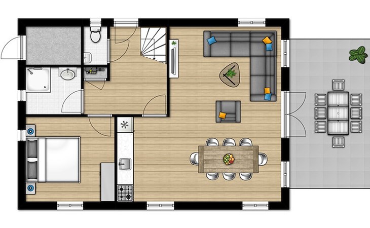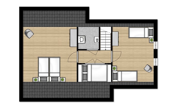 De vrijstaande Type C bungalow Comfort 6+2 is geschikt voor maximaal 6 volwassenen en 2 kinderen. Deze bungalow op Summio Landgoed Het Grote Zand heeft 3 slaapkamers en 1 badkamers, verdeeld over 2 verdiepingen.