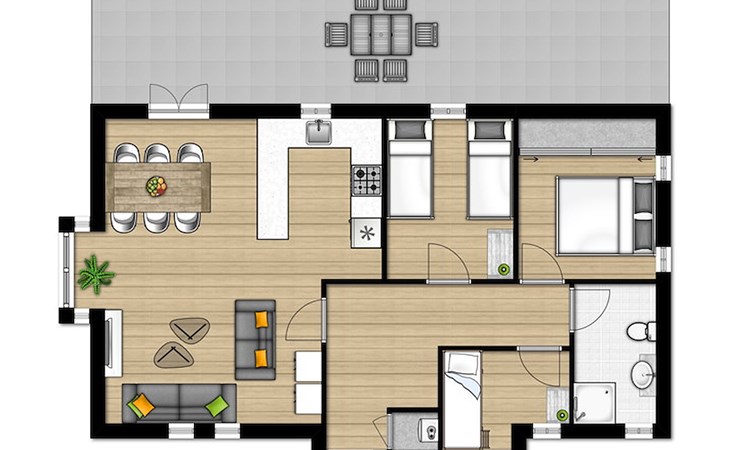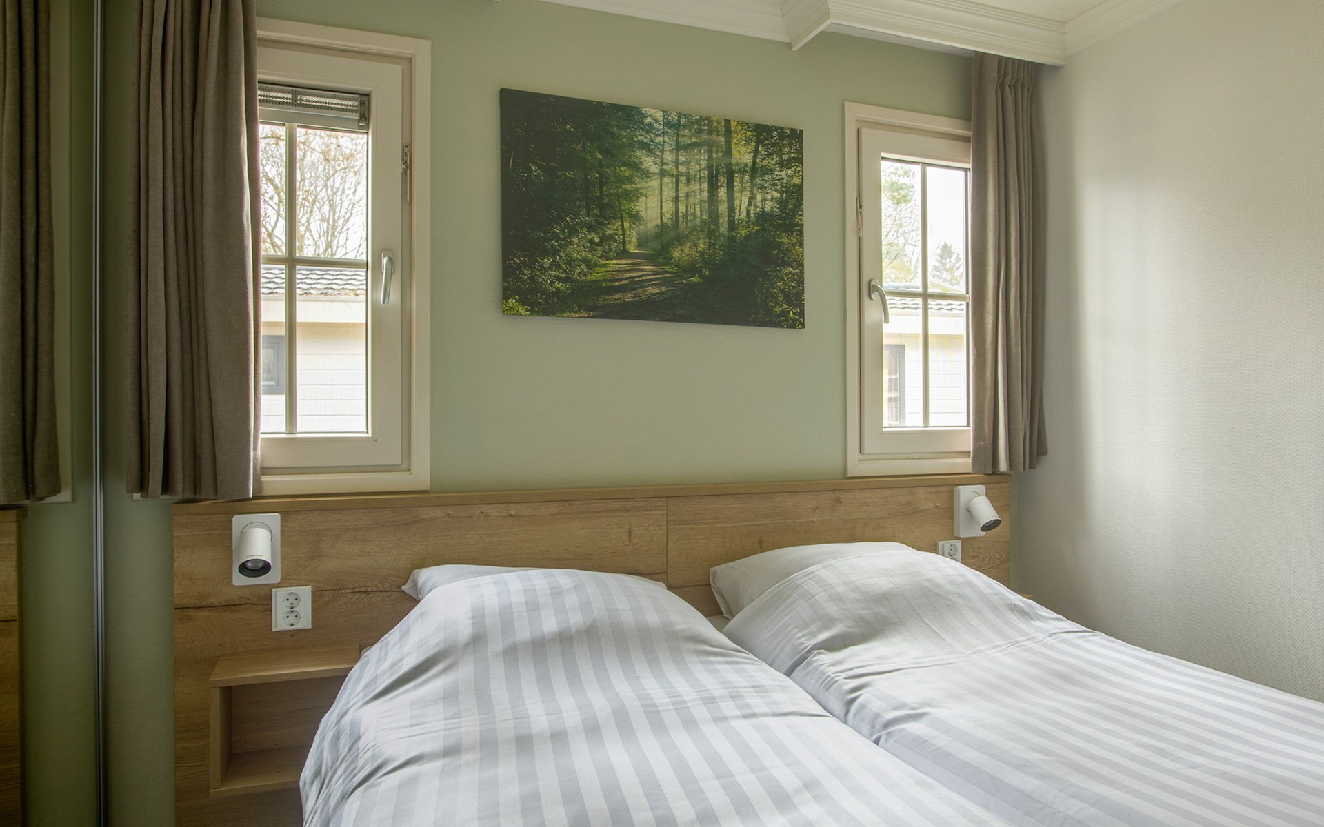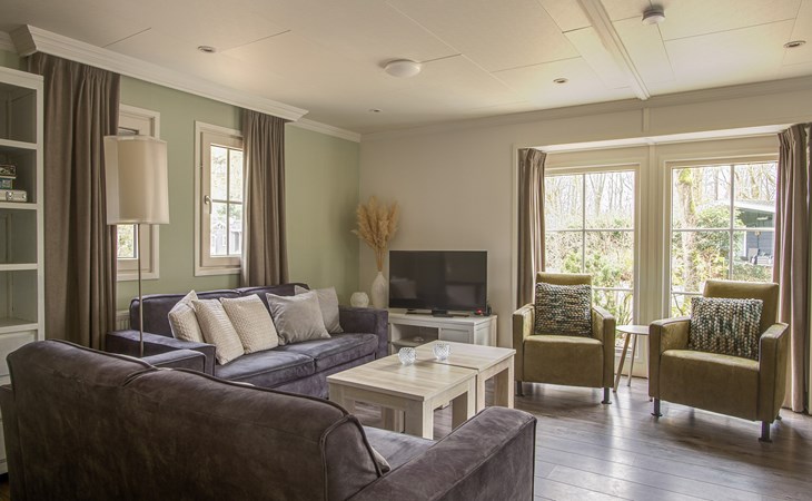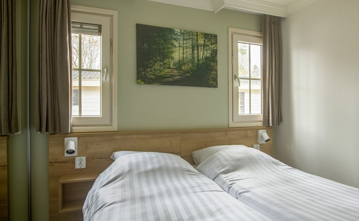 Het vrijstaande B Chalet Notaris 6 is geschikt voor maximaal 6 personen. Dit chalet op Summio Landgoed Het Grote Zand heeft 3 slaapkamers en 1 badkamer.