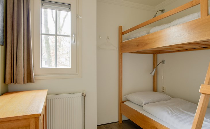 Het chalet heeft 3 slaapkamers. Twee van deze slaapkamers hebben elk 2 éénpersoonsbedden. In de derde slaapkamer staat een stapelbed. De badkamer beschikt over een douche, een wastafel en een toilet.
