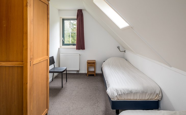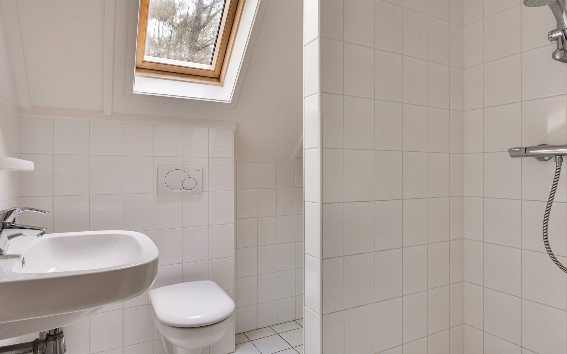 Op de begane grond bevindt zich 1 slaapkamer en 1 badkamer. In de slaapkamer staan 2 éénpersoonsbedden. De badkamer beschikt over een douche en een wastafel. Ook is er een apart toilet aanwezig of een toilet in de badkamer.