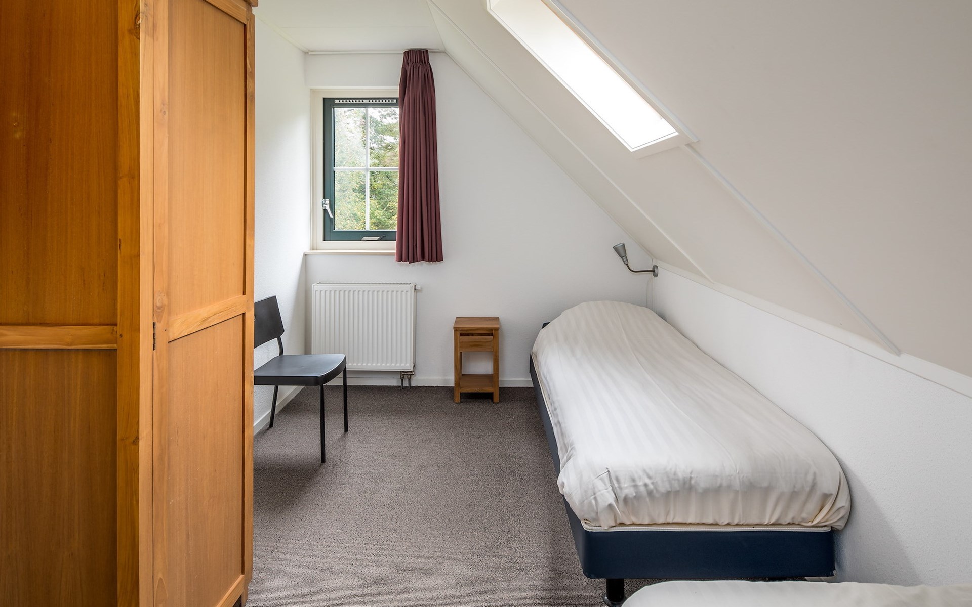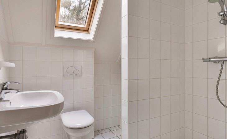 Op de eerste verdieping bevinden zich 3 slaapkamers en 1 badkamer. Alle slaapkamers hebben 2 éénpersoonsbedden. De badkamer beschikt over een douche, wastafel en een toilet.