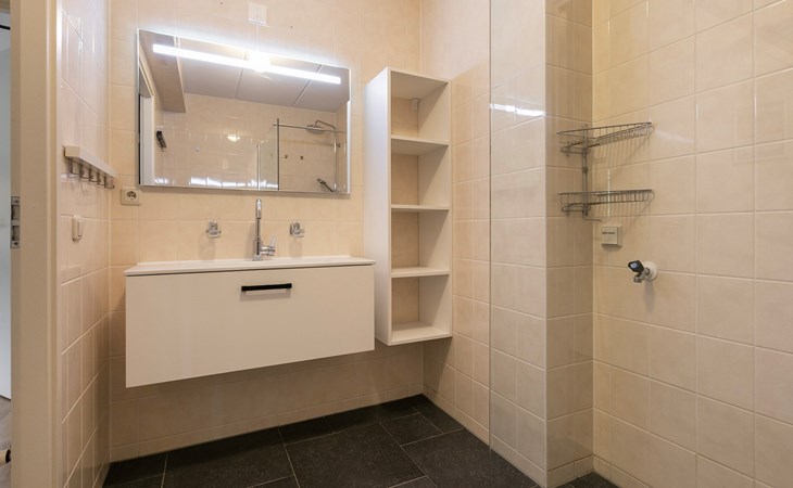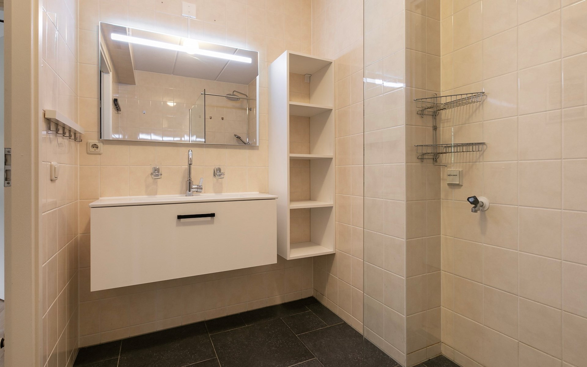 De badkamer beschikt over een regendouche en een wastafel. Er zijn 2 aparte toiletten aanwezig.