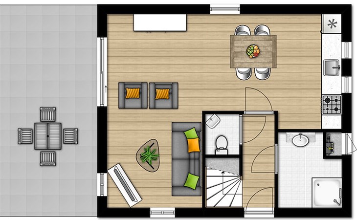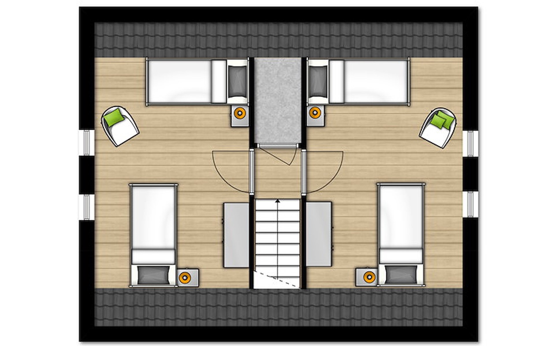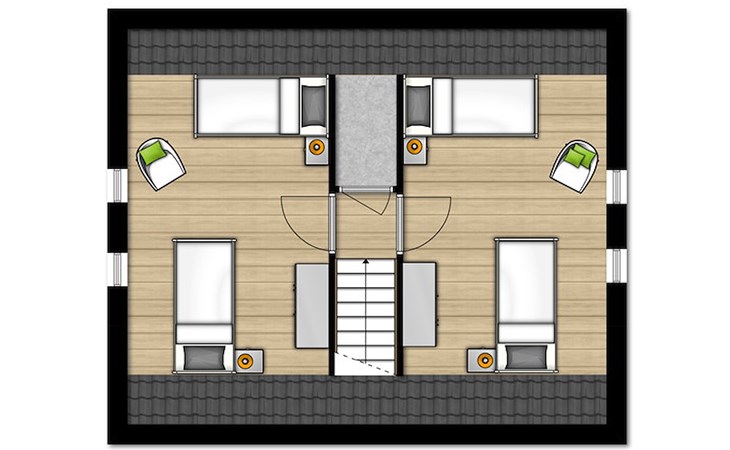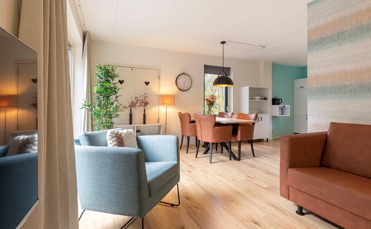 De vrijstaande bungalow Type C bungalow Luxe 4 op Summio Landgoed Het Grote Zand is geschikt voor maximaal 4 personen. Deze luxe bungalow bestaat uit 2 verdiepingen en heeft 2 slaapkamers en 1 badkamer.