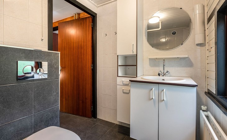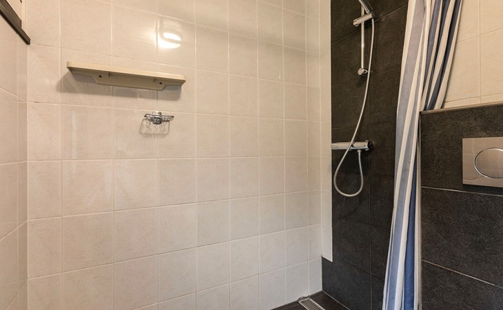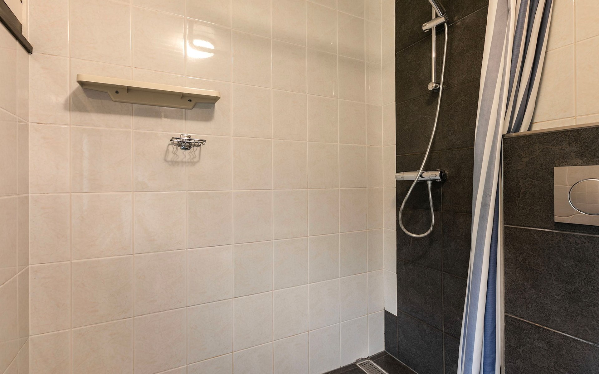 Op de begane grond bevindt zich 1 slaapkamer en 1 badkamer. In de slaapkamer staan 2 éénpersoonsbedden. De badkamer beschikt over vloerverwarming, een douche en/of bad, wastafel en toilet.