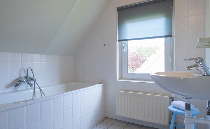 De eerste verdieping heeft 3 slaapkamers en 1 badkamer. In 1 slaapkamer staan 2 éénpersoons boxsprings. In de andere 2 slaapkamers staat 1 éénpersoons boxspring. De badkamer beschikt over een ligbad, wastafel en een toilet.