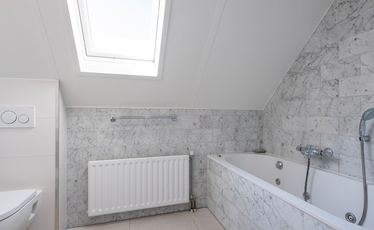 De eerste verdieping heeft 3 slaapkamers met elk 2 éénpersoons boxsprings. Eén van deze slaapkamers heeft een televisie. De badkamer op de eerste verdieping beschikt over een ligbad, wastafel en een toilet.