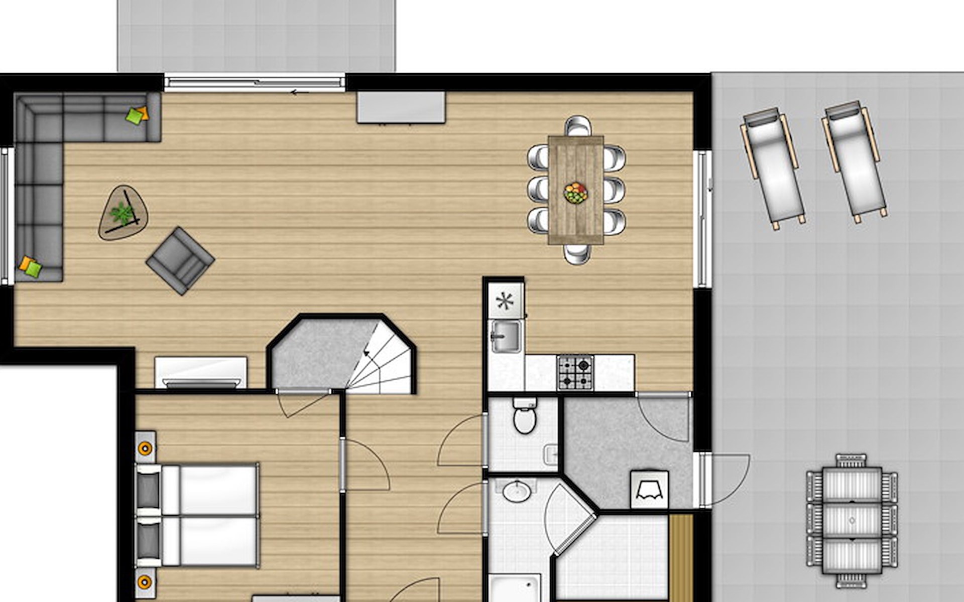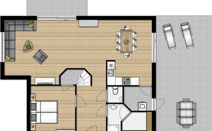 De vrijstaande bungalow B8 Comfort op Summio Zeeland Village is geschikt voor maximaal 8 personen. Deze comfortabele bungalow heeft 4 slaapkamers en 2 badkamers, verdeeld over 2 verdiepingen.