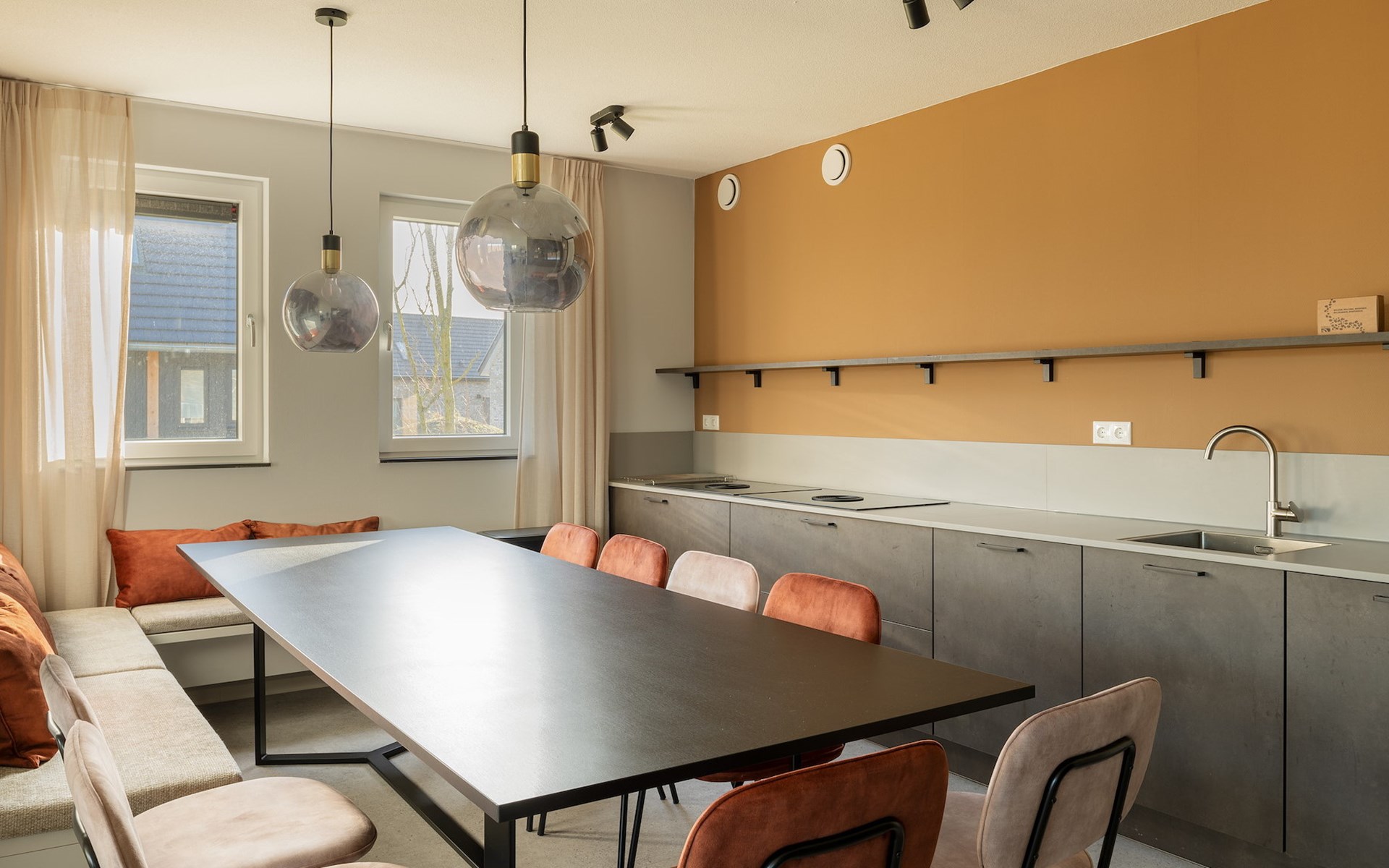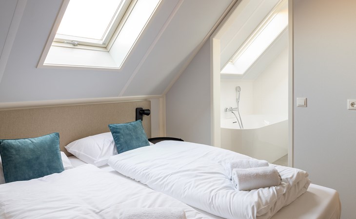 De royale woonkamer is voorzien van een zithoek met een smart-tv waarop je je favoriete content kunt streamen. Daarnaast is er een eethoek met eettafel. De luxe open keuken is volledig uitgerust met onder andere een Bora kookplaat, combi-oven, vaatwasser en een Nespresso apparaat. Verder bevinden zich op de begane grond 2 slaapkamers met elk 2 éénpersoonsbedden, waarvan één slaapkamer een smart- tv heeft met streaming mogelijkheid. Daarnaast bevindt zich op de begane grond nog een badkamer met douche, wastafel en toilet en een separaat toilet.