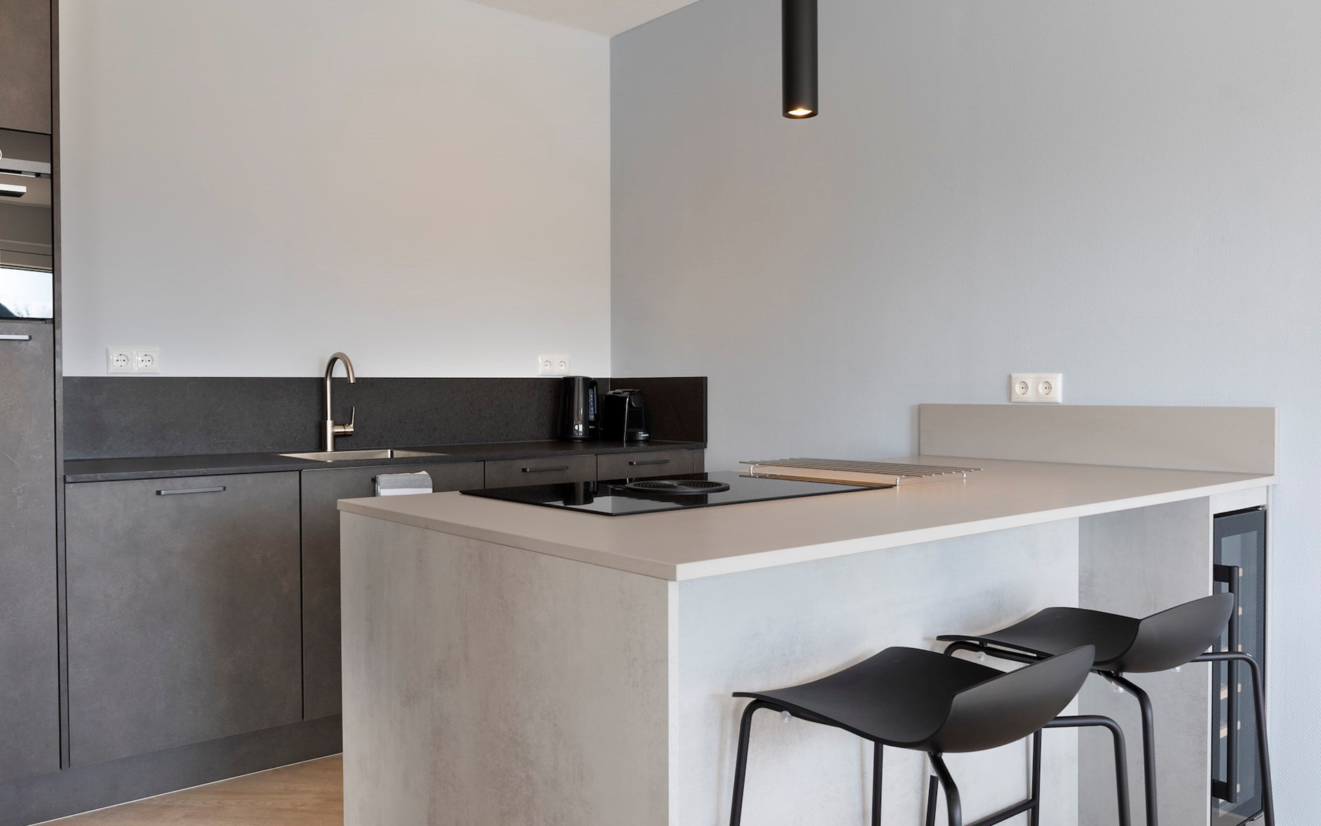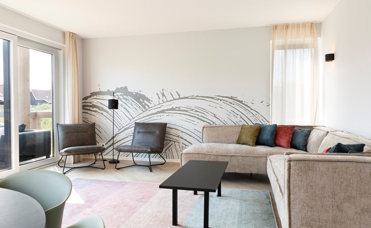 De ruime woonkamer heeft een zitgedeelte met smart-tv met streaming mogelijkheid. Daarnaast is er een eethoek met een eettafel. De luxe keuken is volledig uitgerust met onder andere een Bora kookplaat, combi-oven, vaatwasser, Nespresso apparaat en een wijnkoelkast. Op de begane grond bevindt zich een slaapkamer met 2 éénpersoonsbedden, een smart-tv met streaming mogelijkheid en een comfortabele en-suite badkamer met douche en wastafel. Er is tevens een separaat toilet aanwezig op de begane grond.