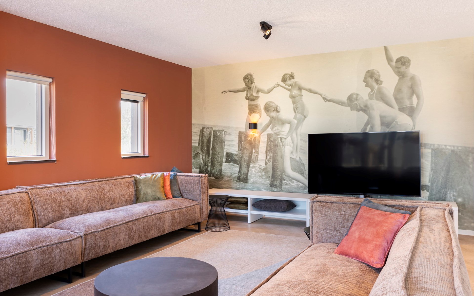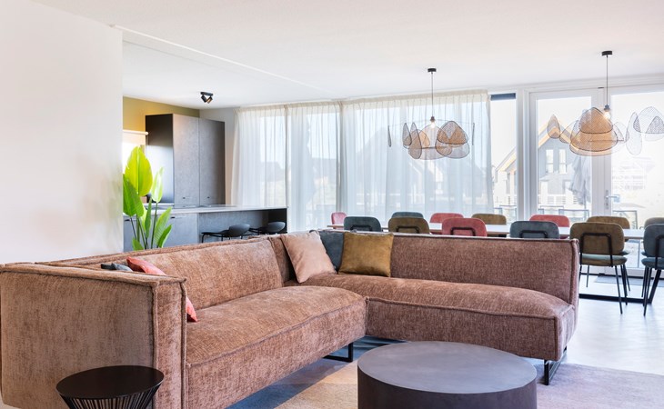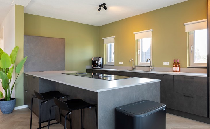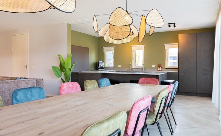 De royale woonkamer is voorzien van een zithoek met smart-tv met streaming mogelijkheid. Daarnaast is er een eethoek waar je met het hele gezelschap heerlijk kunt tafelen. De luxe keuken met kookeiland is van alle gemakken voorzien, met onder andere een dubbele Bora inductiekookplaat, 2 combi-ovens, 2 vaatwassers en een automatische koffiebonenmachine.