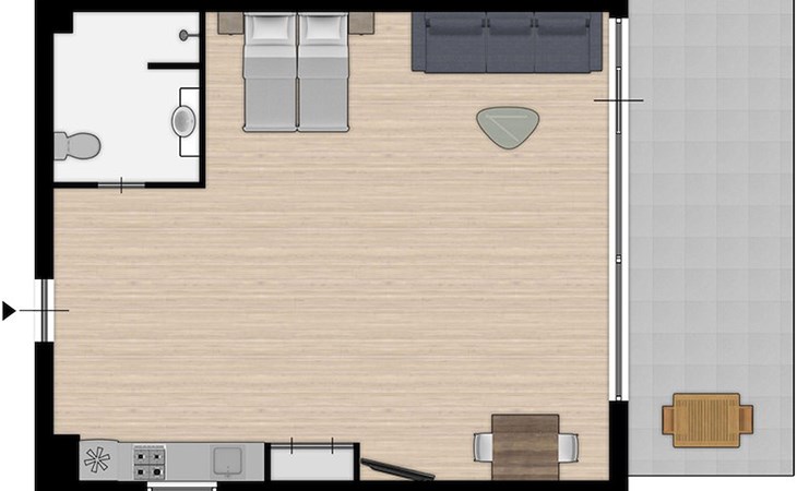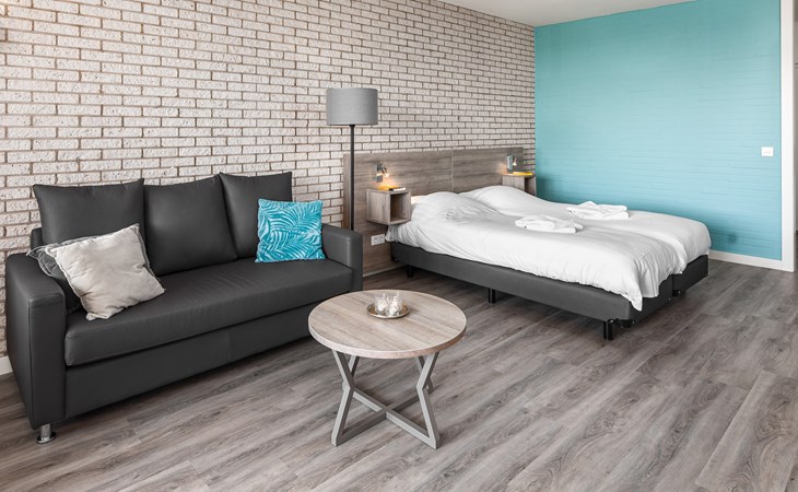 Het gelijkvloerse Appartement Comfort 2A is geschikt voor maximaal 2 personen. Dit appartement op Summio Parc Aquadelta heeft een woon-slaapkamer en 1 badkamer.