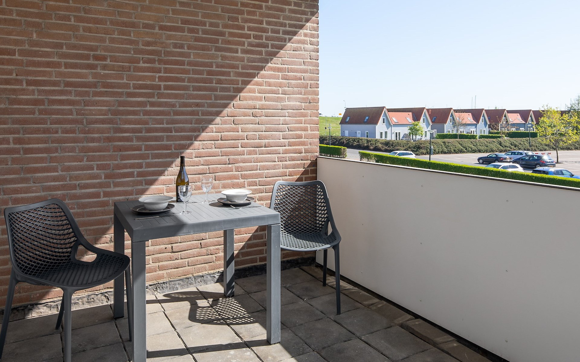 Daarnaast heeft het appartement een balkon met tuinmeubilair.