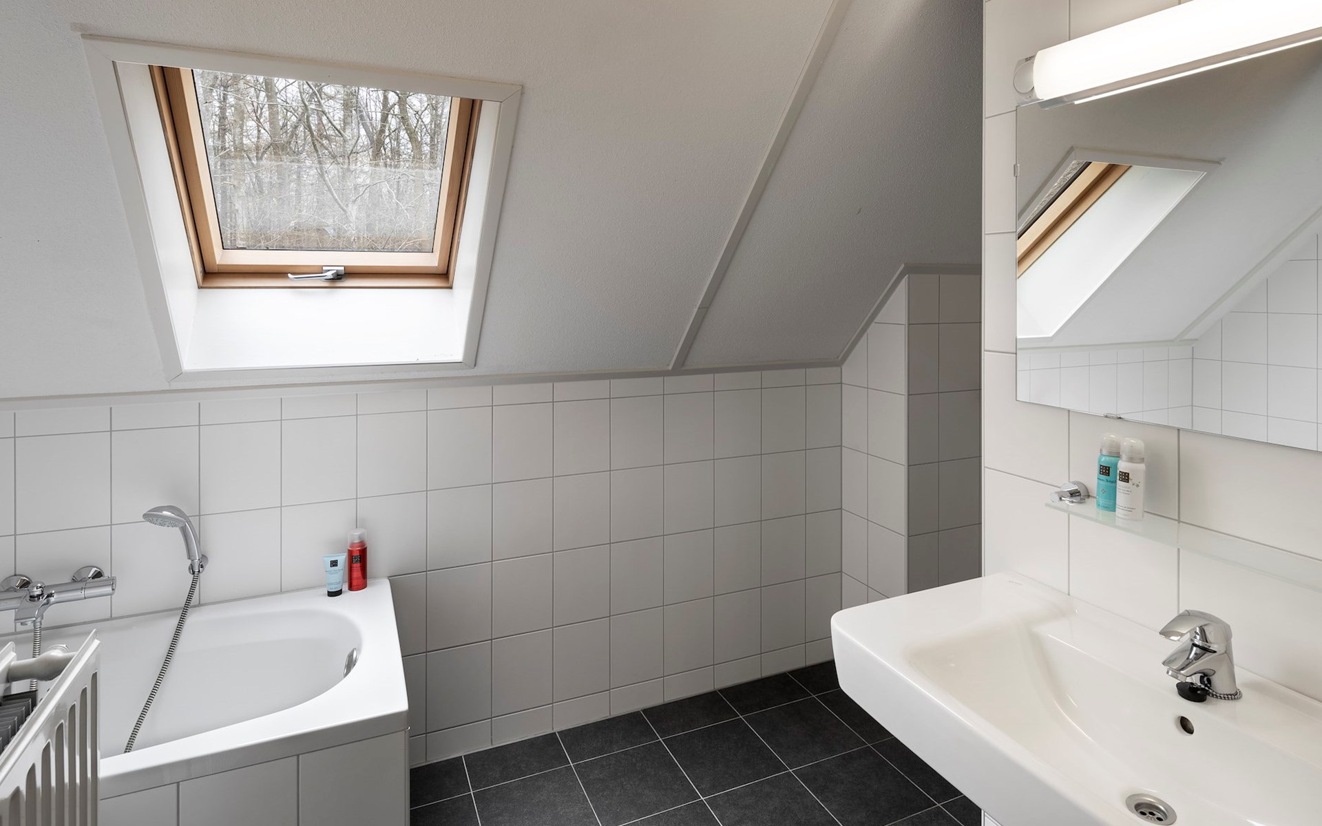 De eerste verdieping heeft 3 slaapkamers en 1 badkamer. In alle slaapkamers staan 2 éénpersoons boxsprings. De badkamer beschikt over een ligbad, inloopdouche en een wastafel. Ook is er een apart toilet aanwezig.