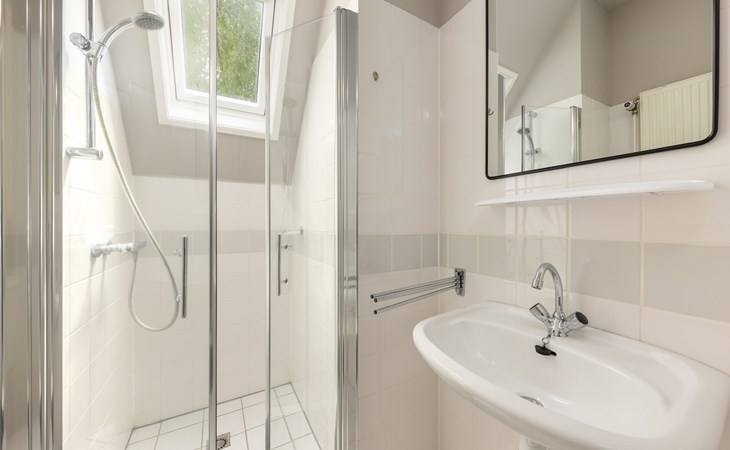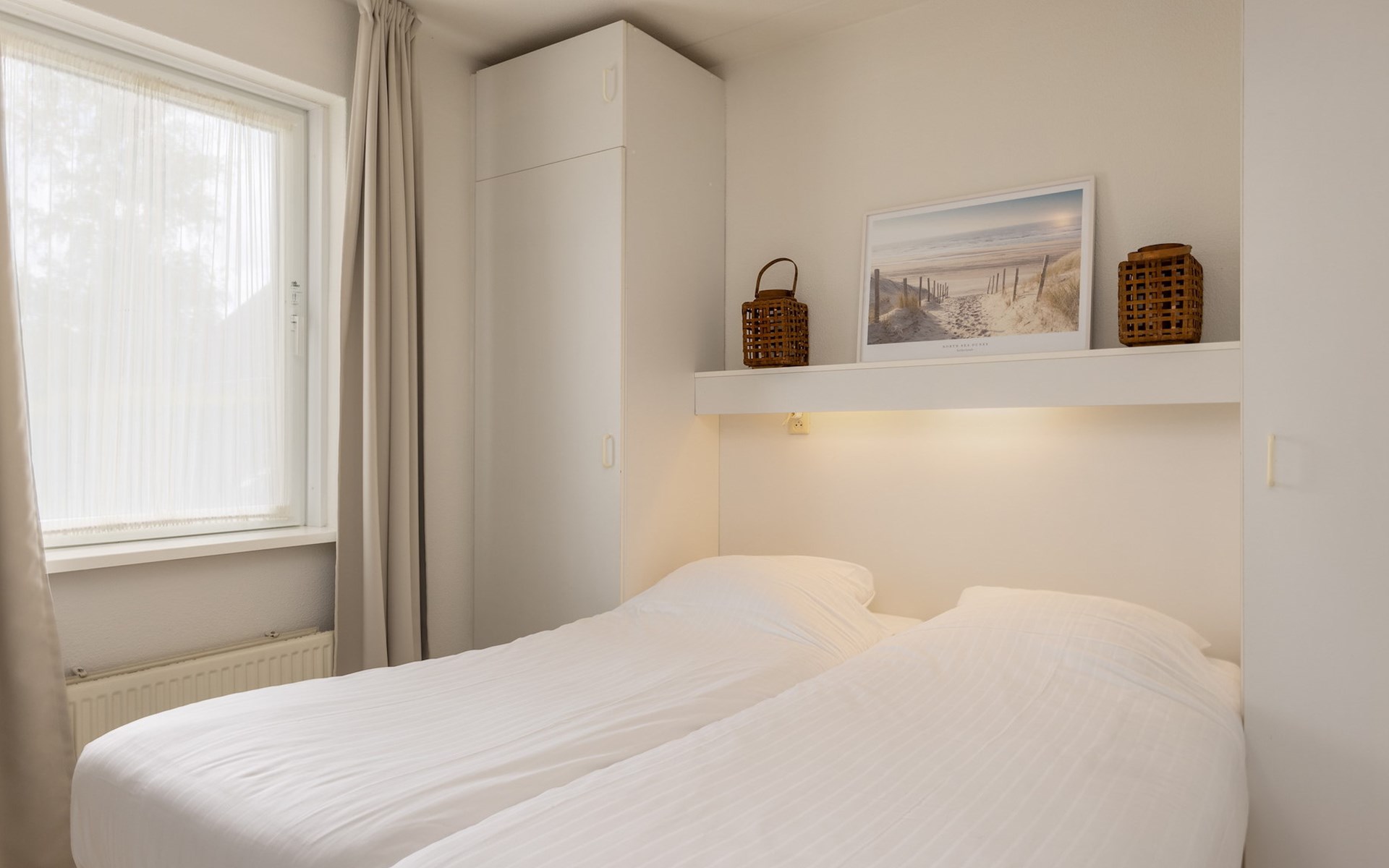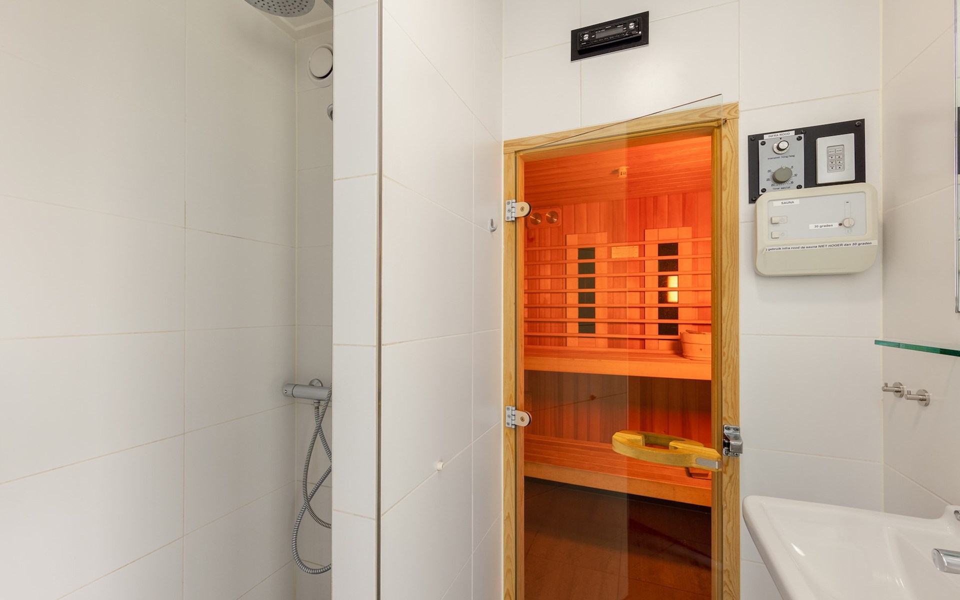 Op de begane grond bevinden zich 1 slaapkamer en 1 badkamer. In de slaapkamer staan 2 éénpersoons boxsprings. De badkamer is voorzien van een douche, wastafel én heeft bovendien een Finse sauna. Daarnaast is er een apart toilet aanwezig op de begane grond.