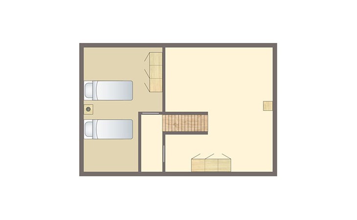 De eerste verdieping heeft 1 slaapkamer met 2 éénpersoons boxsprings.