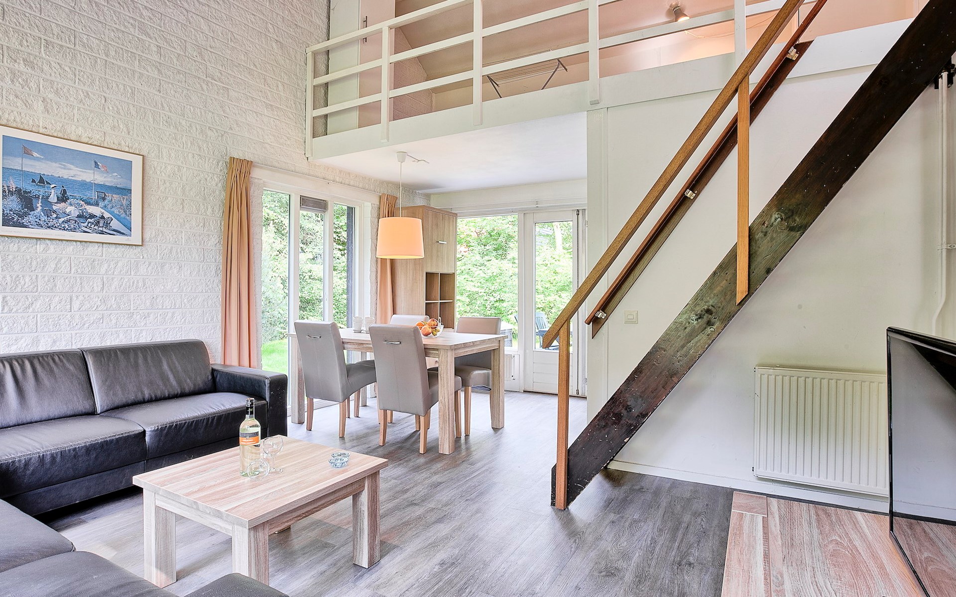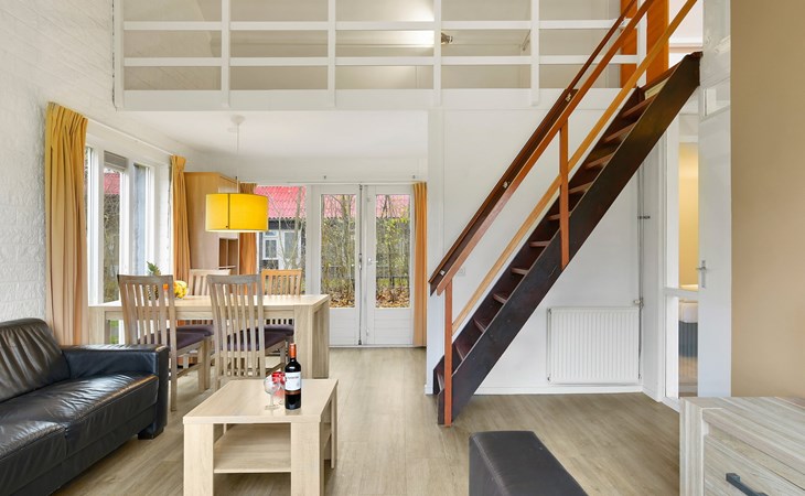 De geschakelde bungalow 4B op Summio Waterpark De Bloemert is geschikt voor maximaal 4 personen. De bungalow bevindt zich op het Bospark en heeft 2 slaapkamers en 1 badkamer, verdeeld over 2 verdiepingen.