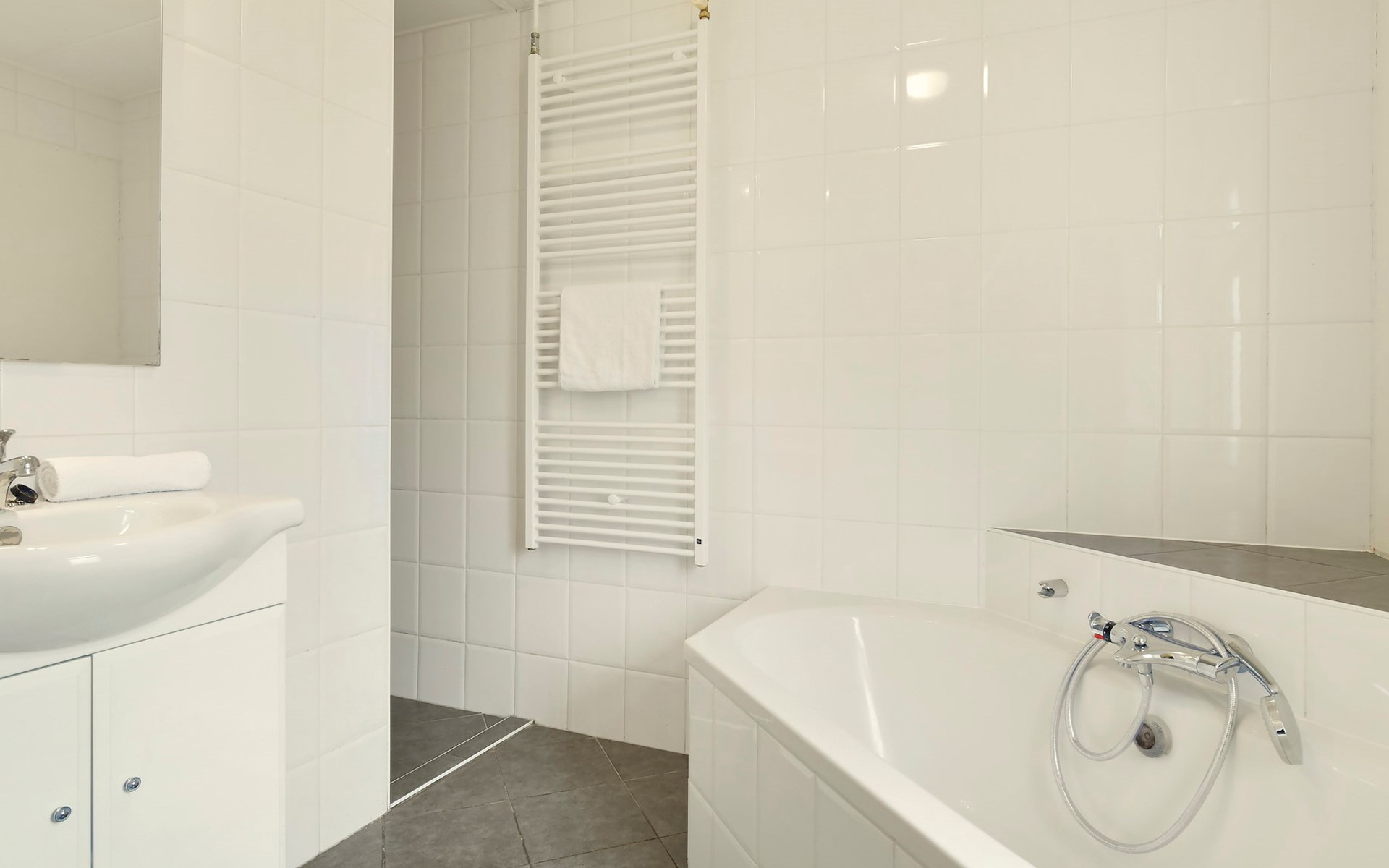 Op de begane grond bevindt zich 1 slaapkamer met 2 éénpersoons boxsprings. Ook is er op de begane grond een badkamer voorzien van een ligbad, douchecabine en wastafel. Daarnaast is een apart toilet aanwezig.