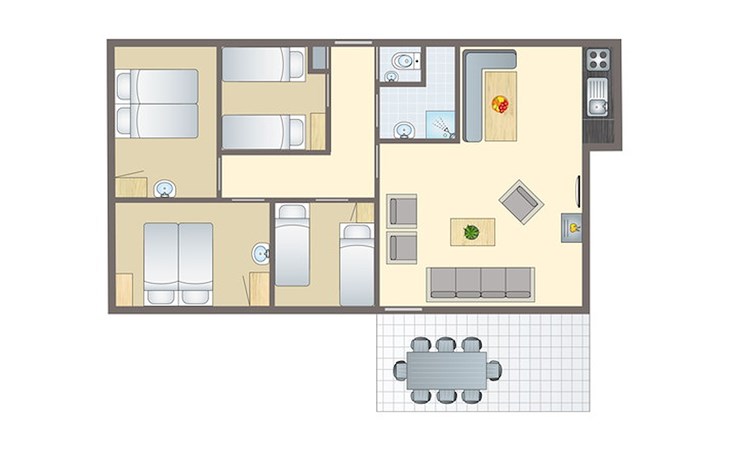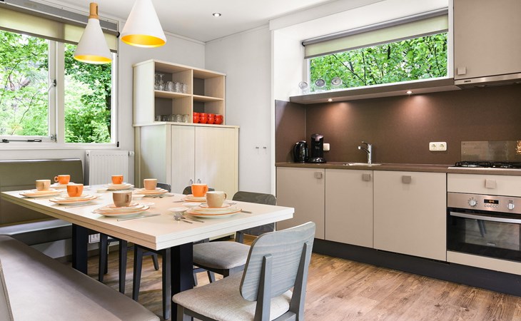 De vrijstaande 8C bungalow is geschikt voor maximaal 8 personen. De vrijstaande bungalow op Summio Parc Heihaas ligt in het bos en heeft 4 slaapkamers en 1 badkamer.