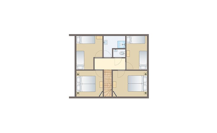 Op de eerste verdieping bevinden zich 4 slaapkamers en 1 badkamer. In deze 4 slaapkamers staan elk 2 éénpersoons boxsprings, 2 van deze slaapkamers hebben een sofftopper. De badkamer beschikt over een douche en wastafel. Daarnaast is er een apart toilet aanwezig.