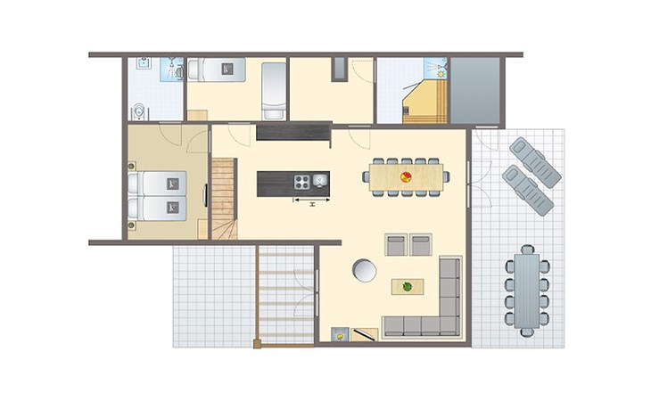 Bungalow 12LTS op Summio Parc Port Greve is geschikt voor maximaal 12 personen. De groepsaccommodatie ligt aan de rand van het park. De rolstoelvriendelijke bungalow bestaat uit 2 verdiepingen en heeft 6 slaapkamers en 3 badkamers.