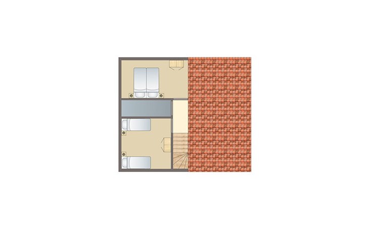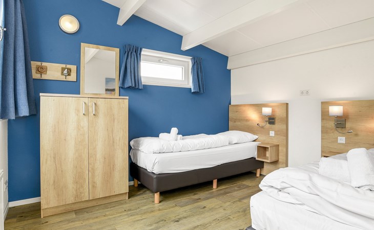 Op de eerste verdieping bevinden zich 2 slaapkamers. In beide slaapkamers staan 2 éénpersoonsbedden. Eén van deze slaapkamers heeft een softtopper. De bedden zijn opgemaakt bij aankomst.