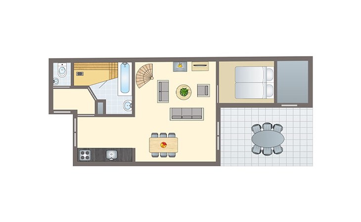 De geschakelde bungalow 6M is geschikt voor maximaal 6 personen. Deze bungalow op Summio Parc Port Greve bestaat uit 2 verdiepingen en heeft 3 slaapkamers en 1 badkamer.