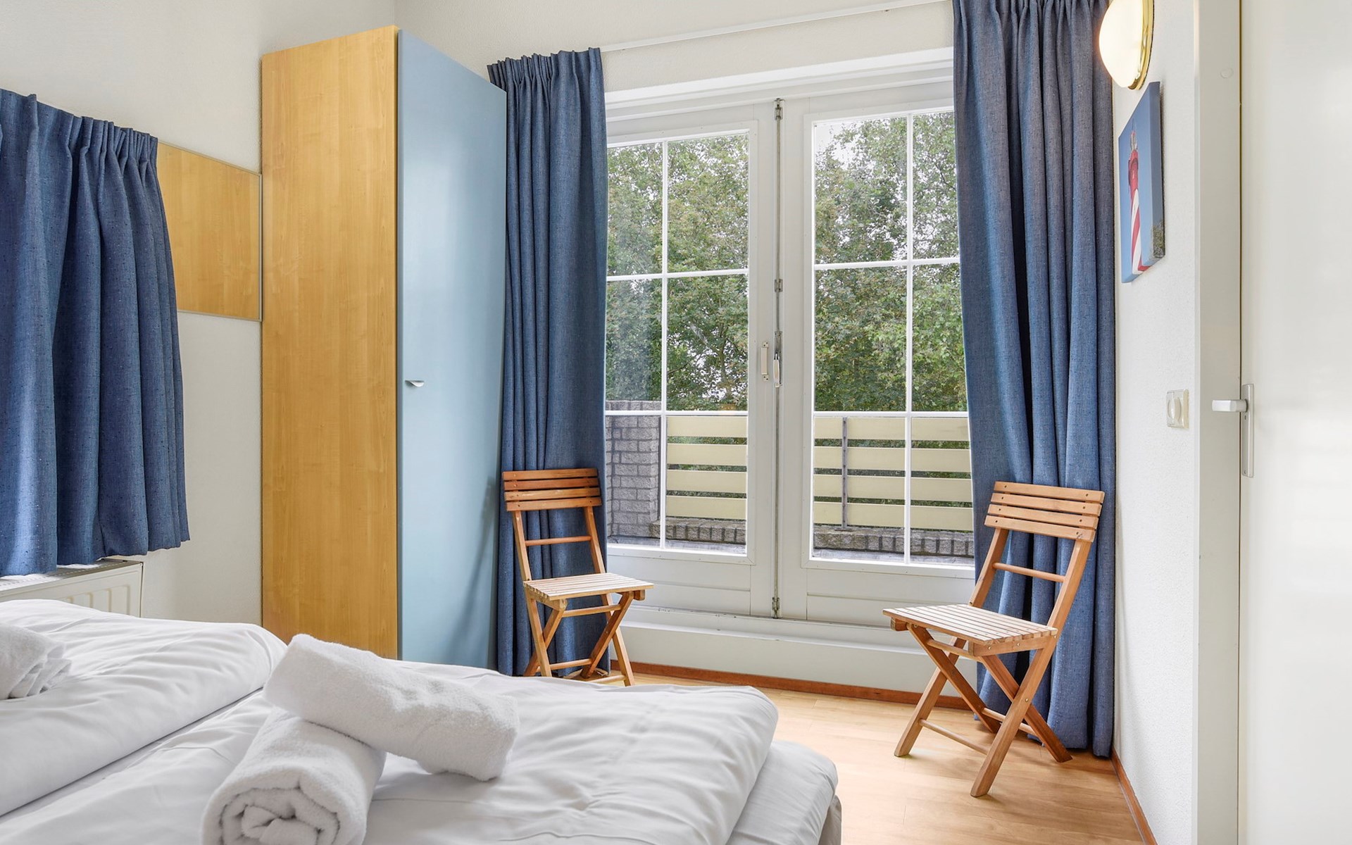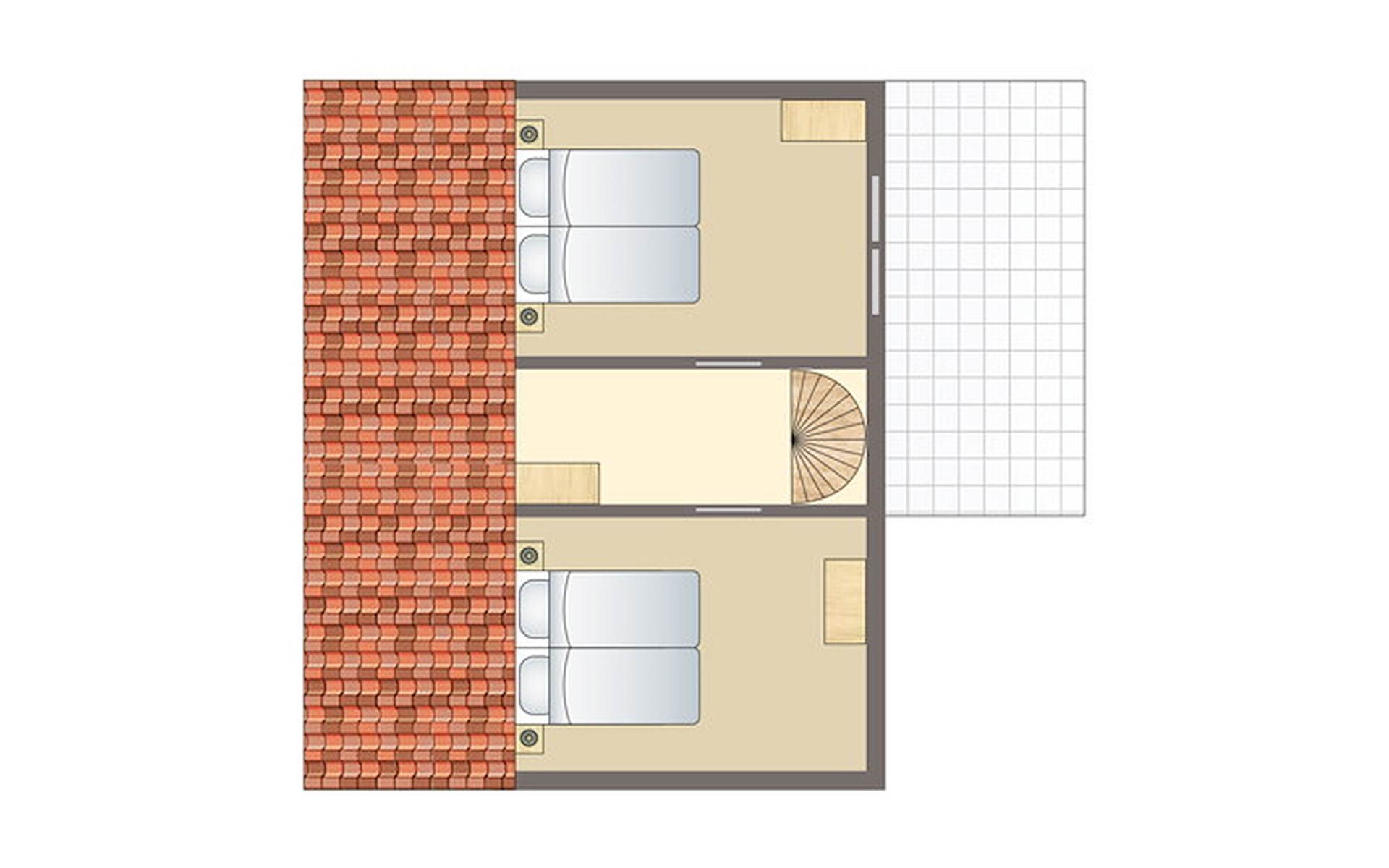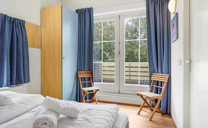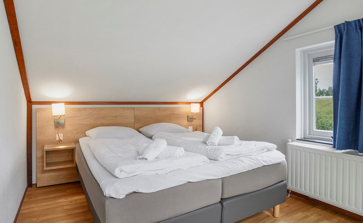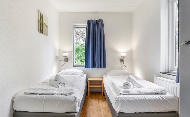 Op de eerste verdieping bevinden zich 2 slaapkamers. In beide slaapkamers staan 2 éénpersoonsbedden.