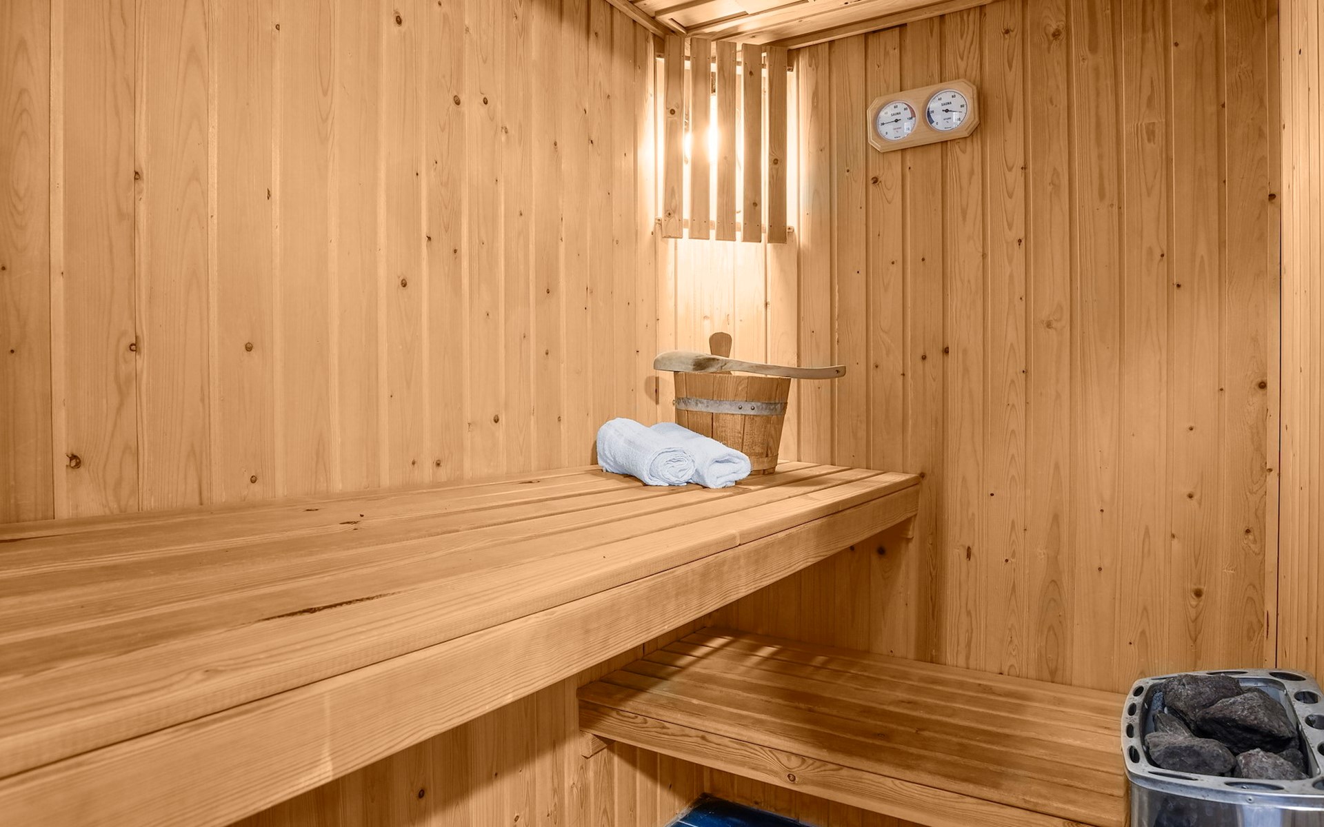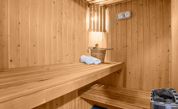 Op de begane grond bevindt zich 1 slaapkamer en de badkamer. In de slaapkamer staan 2 éénpersoonsbedden met een softtopper. De badkamer beschikt over een ligbad, douchecabine en wastafel. In deze badkamer is een privé sauna beschikbaar.