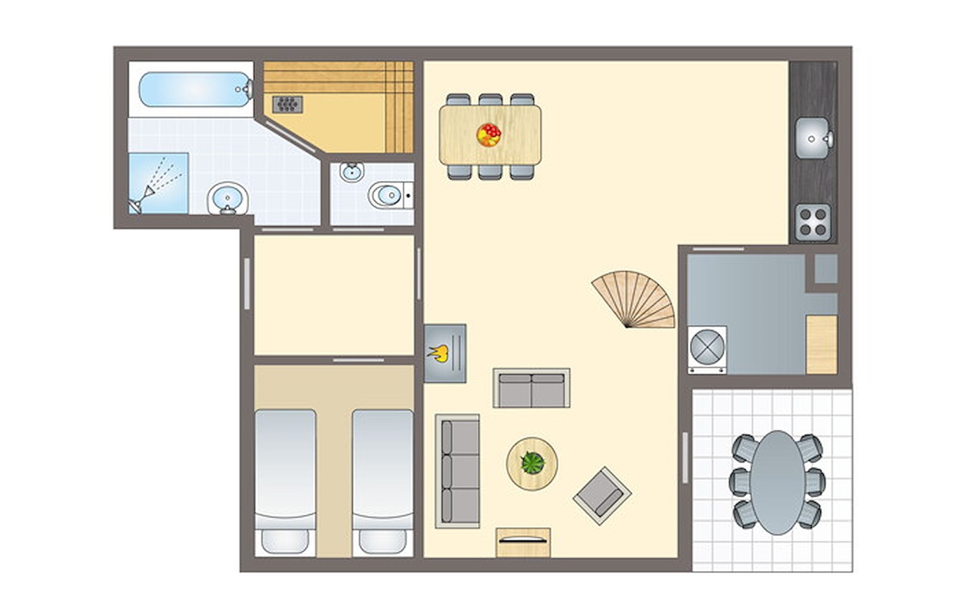 De accommodatie kan anders zijn ingedeeld en ingericht. Plattegronden en afbeeldingen zijn voorbeelden.