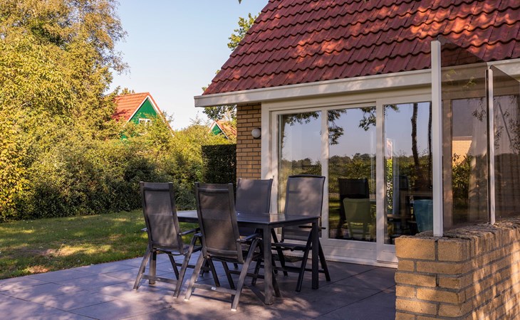 Daarnaast heeft de bungalow een gemeubileerd terras met een parasol. De bungalow heeft een uitpandige berging, traphekjes en kindveilige stopcontacten.