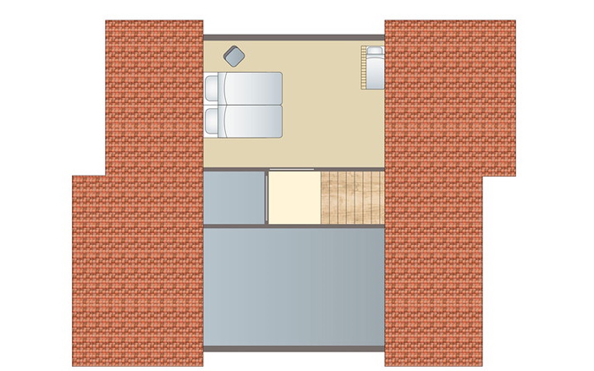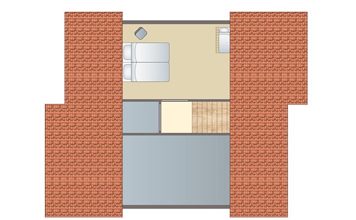 Er is een apart toilet aanwezig. Op de eerste verdieping bevindt zich 1 slaapkamer met 2 éénpersoons boxsprings.