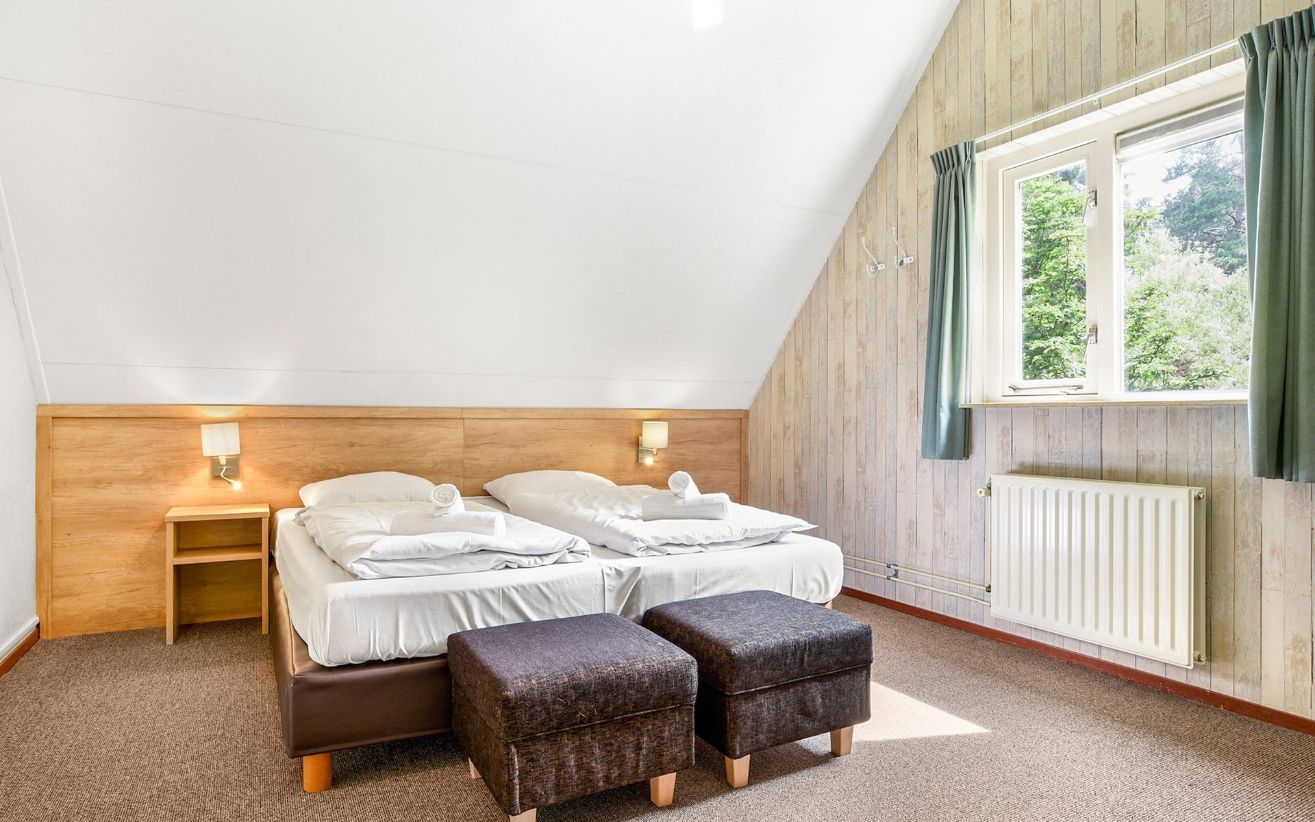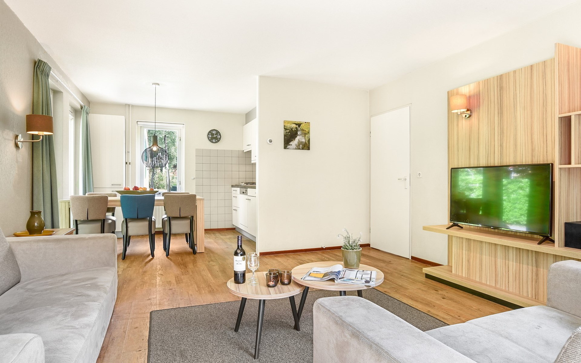 De vrijstaande bungalow 6C1 is geschikt voor maximaal 6 personen. Deze bungalow op Summio Parc Duc de Brabant bestaat uit 2 verdiepingen en heeft 3 slaapkamers en 1 badkamer. De woonkamer is ingericht met een zithoek, een televisie met streamingsmogelijkheden en een radio en grenst aan de open keuken en eethoek. De keuken is voorzien van onder andere een koelkast met vriesvak, magnetron, Senseo apparaat en een vaatwasser.